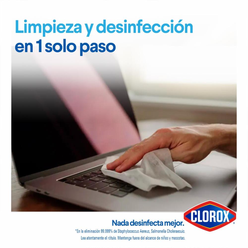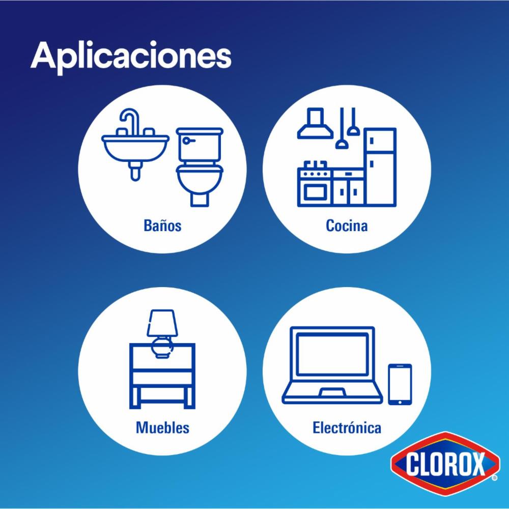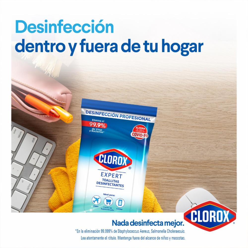 • Las Toallitas Desinfectantes Clorox Expert limpian y desinfectan las múltiples superficies ya que, en tan solo un minuto, eliminan el 99.9% de virus y bacterias, incluyendo el virus causante del COVID-19