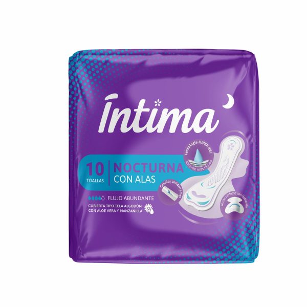 Toallas Femeninas Nocturnas Tipo Tela Con Alas ÍNTIMA 10 Uds