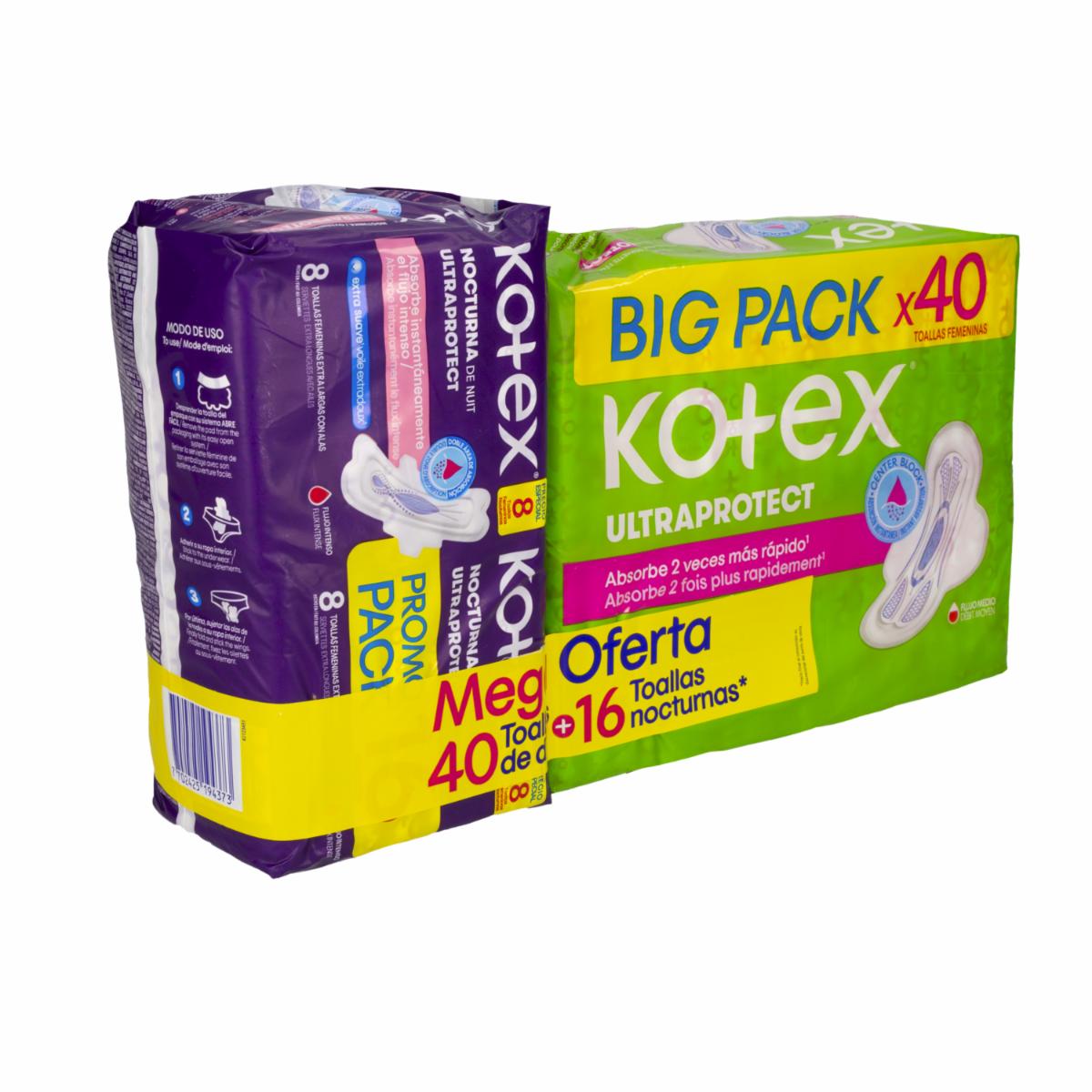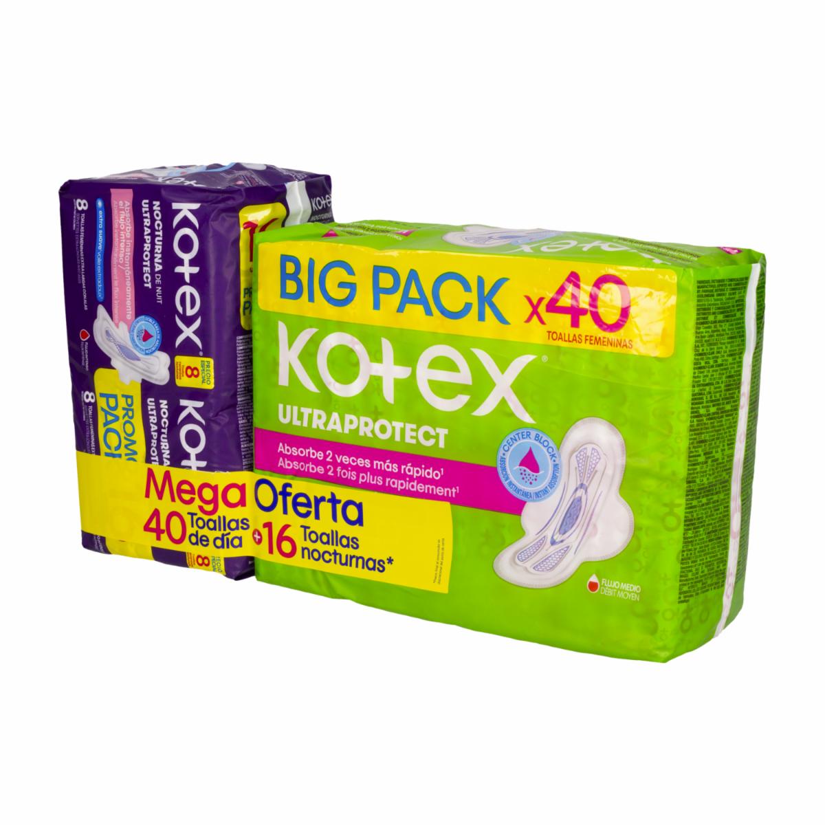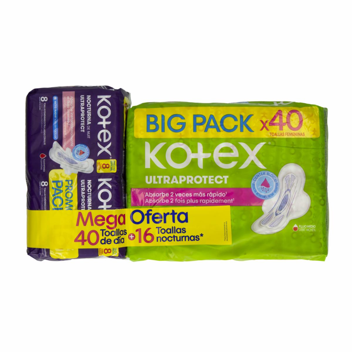 Toallas Sanitarias Mega Diurnas Ultraprotect + 16 Nocturnas KONZIL X 56 Uds