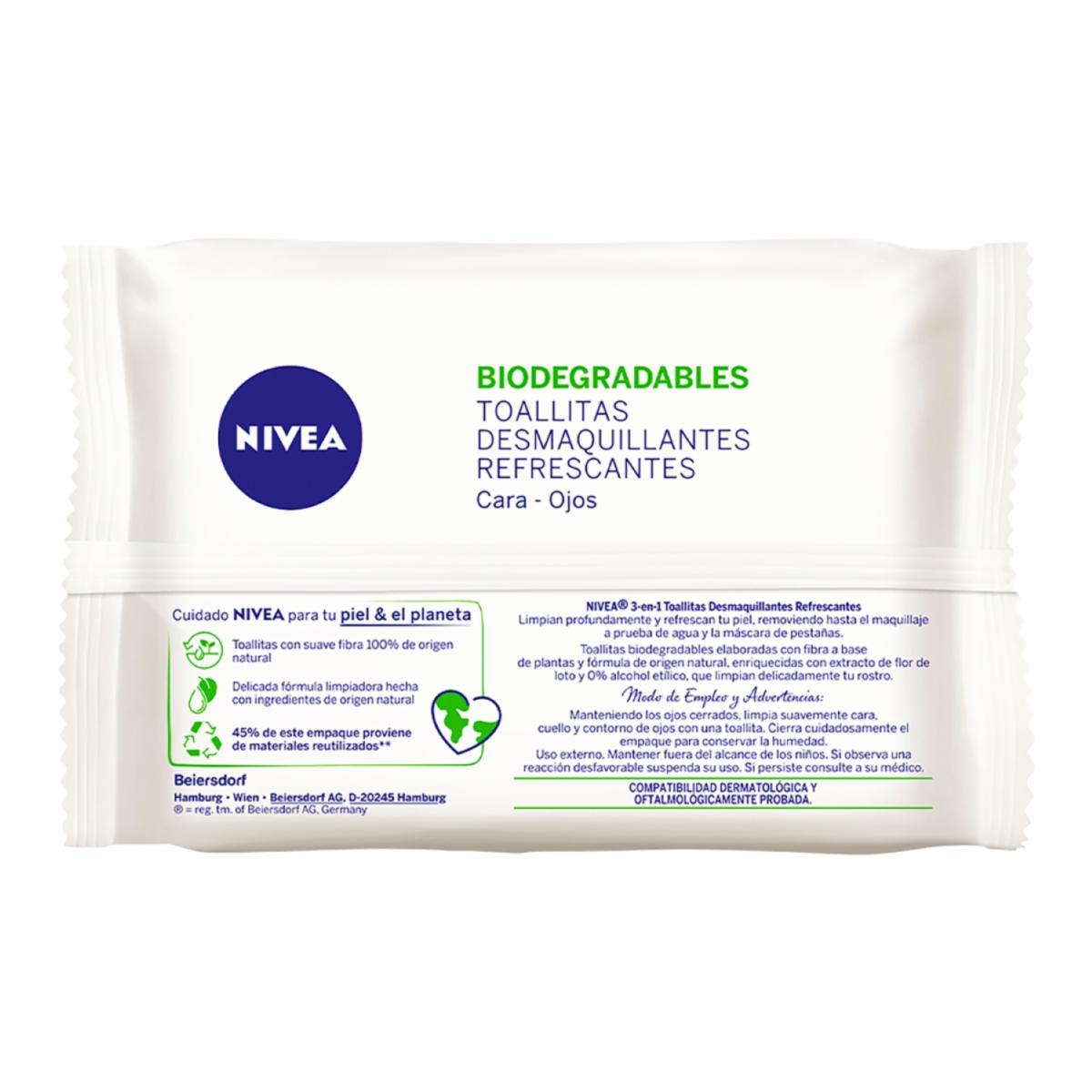 Toallitas Desmaquillantes Biodegradables Refrescantes Piel Normal NIVEA 25 U