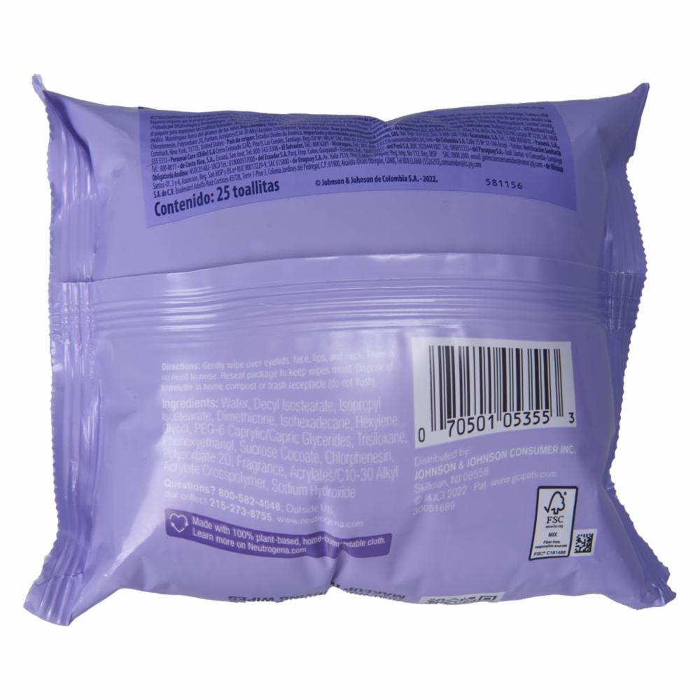 Toallitas desmaquillantes NEUTROGENA Night Calming, ultra suaves que limpian y remueven el maquillaje de rostro y ojos efectivamente
