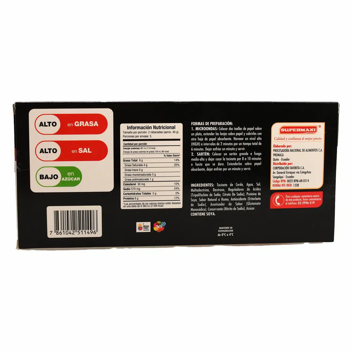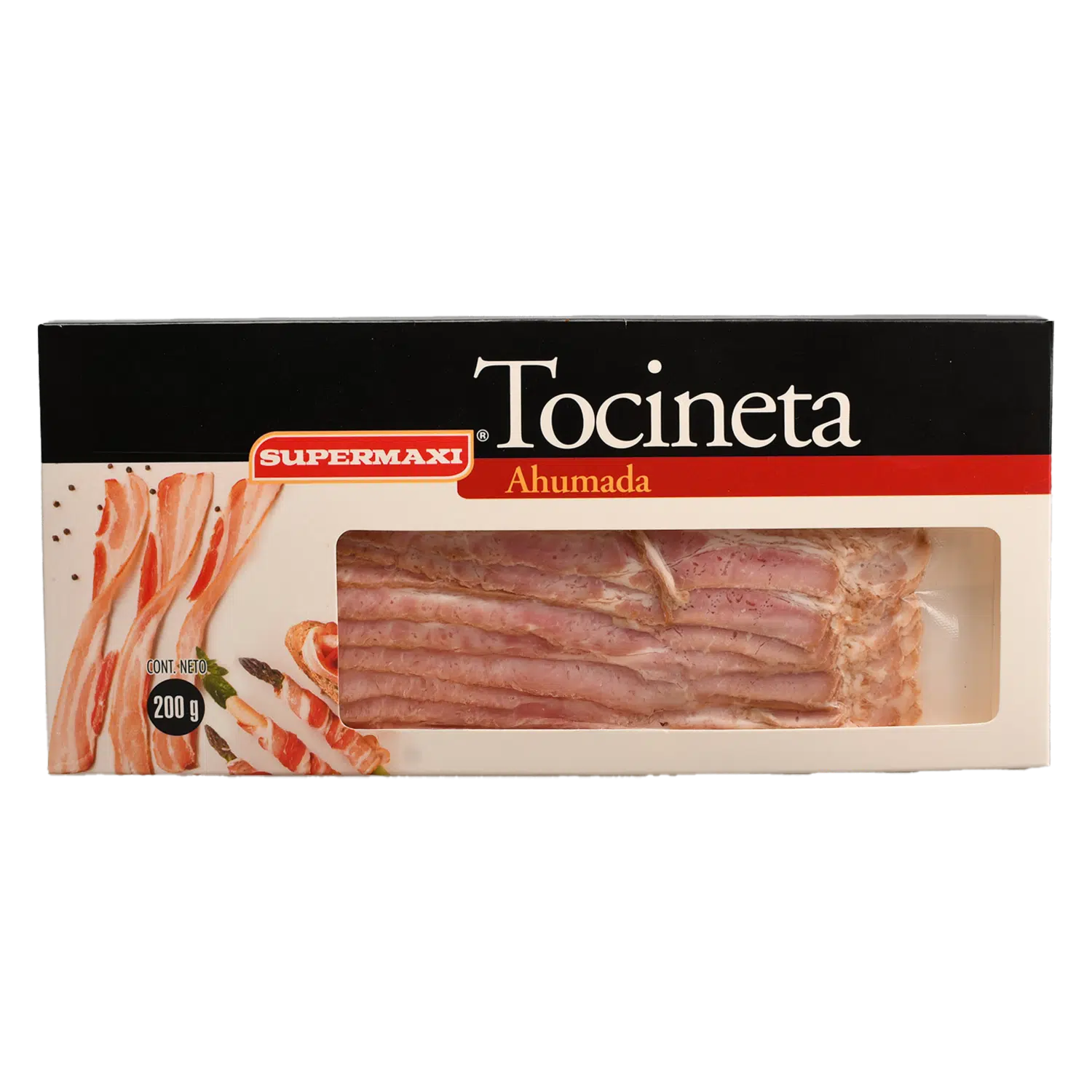 Tocineta Ahumada. SUPERMAXI 200G – SUPERMAXI. Disponible en nuestros locales. Precio y stock pueden variar según la tienda.