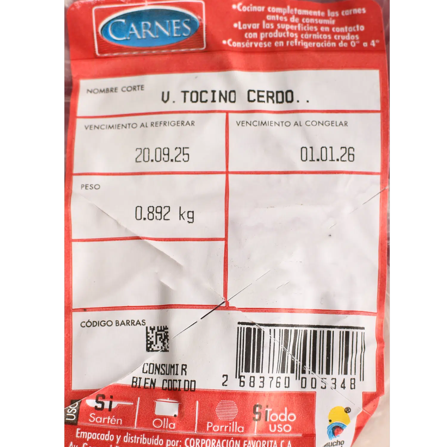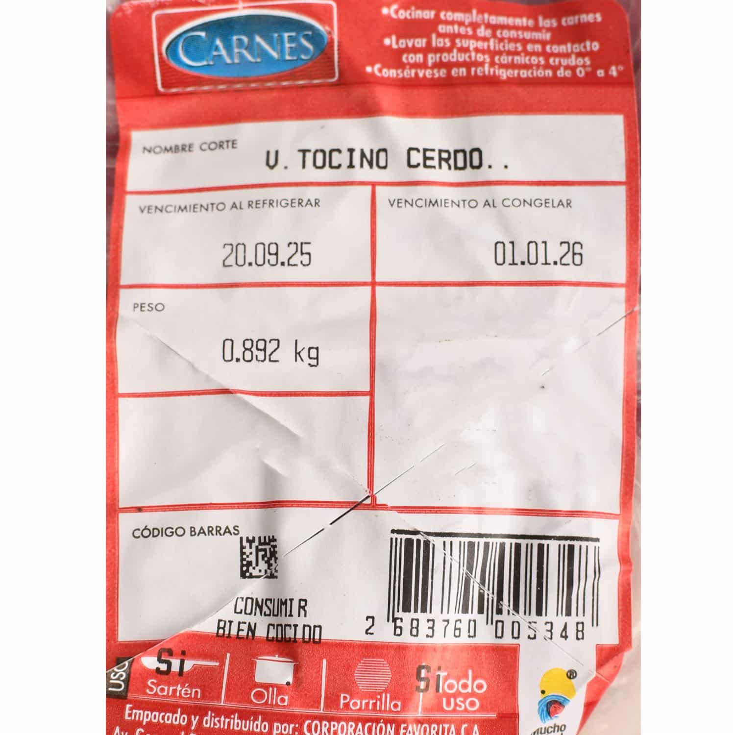 Tocino De Cerdo SUPERCARNES Al Peso – SUPERCARNES. Disponible en nuestros locales. Precio y stock pueden variar según la tienda.
