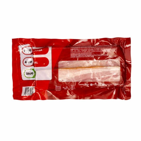 El tocino es muy rico en proteínas cuenta con un 84%, aporta gran cantidad de calorías