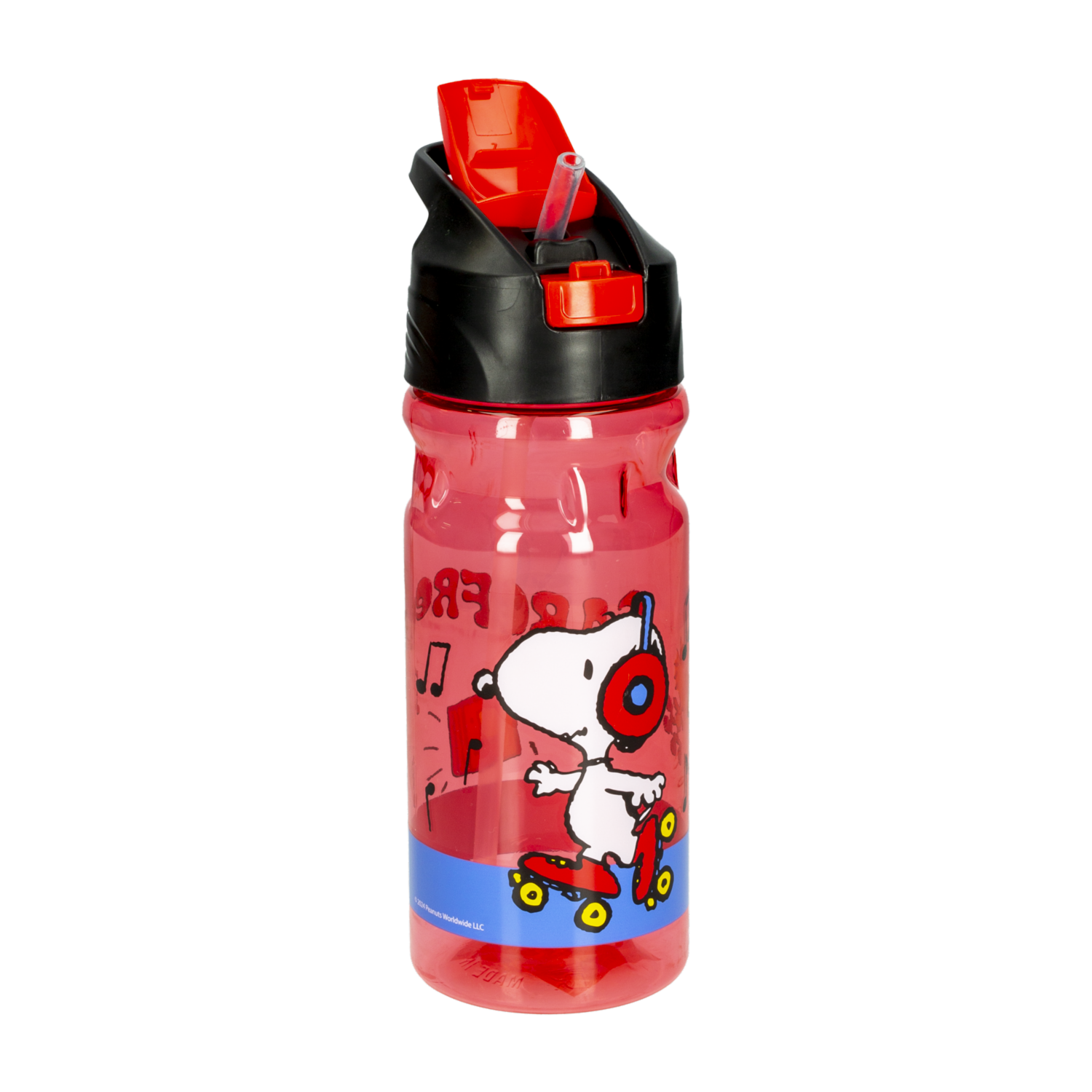 - Esta botella de 600 ml con diseño de Snoopy es perfecta para los fanáticos del famoso perro de cómic. Equipado con un pitillo para facilitar el consumo de líquidos, es ideal para mantener a los niños hidratados mientras disfrutan de sus bebidas favoritas en la escuela, en el parque o en cualquier actividad