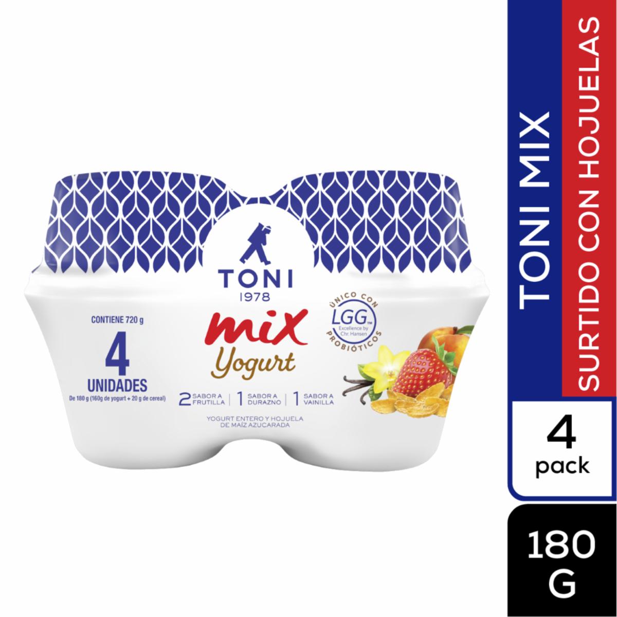 consultando preciosYogurt Mix Surtido TONI 4 X 180 G – TONI. Disponible en nuestros locales. Precio y stock pueden variar según la tienda.