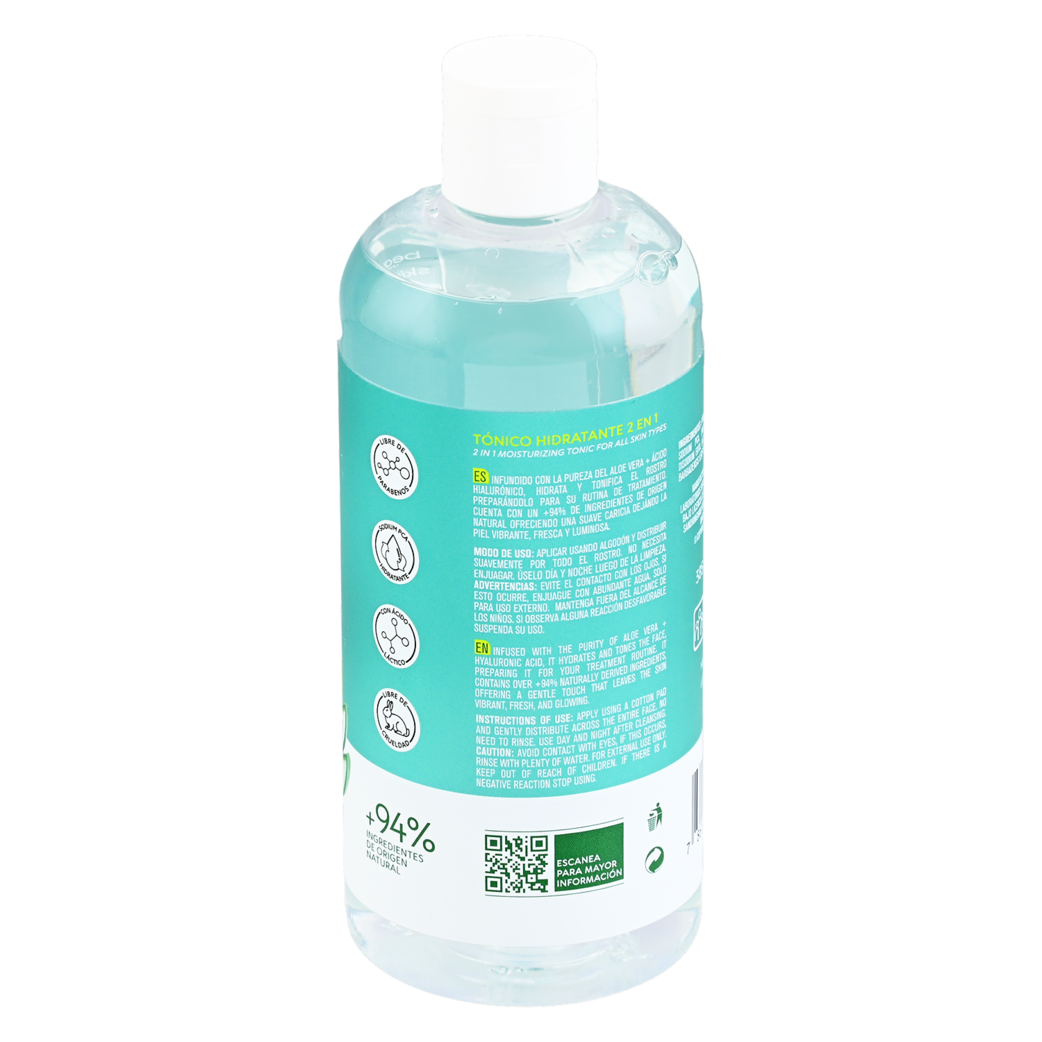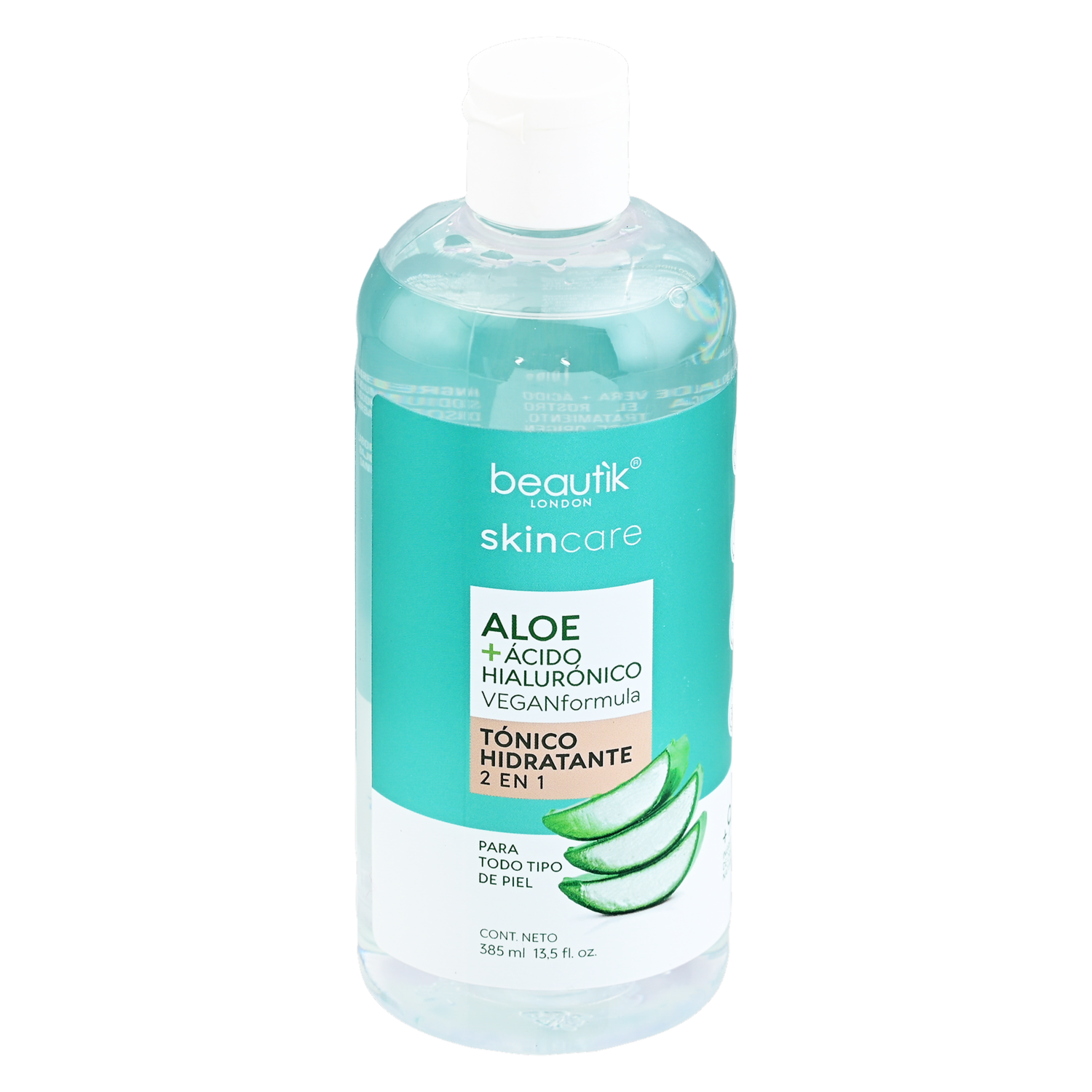 - Tónico hidratante 2 en 1 aloe ácido hialurónico limpia y tonifica la piel mientras la hidrata profundamente. Su fórmula ligera se absorbe rápido y deja una sensación fresca y suave. Ideal para preparar la piel antes del cuidado facial.