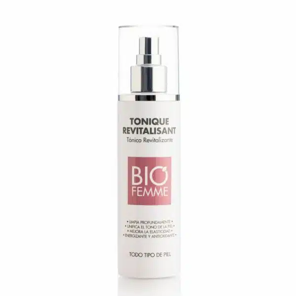 • BioFemme® Tonique Revitalisant equilibra el pH de tu piel y te aporta una sensación de frescura al completar tu rutina de limpieza diaria. Su contenido en extracto de Maca aporta oligoelementos (minerales) de origen vegetal, que ayudan a mejorar el tono y la elasticidad de tu rostro