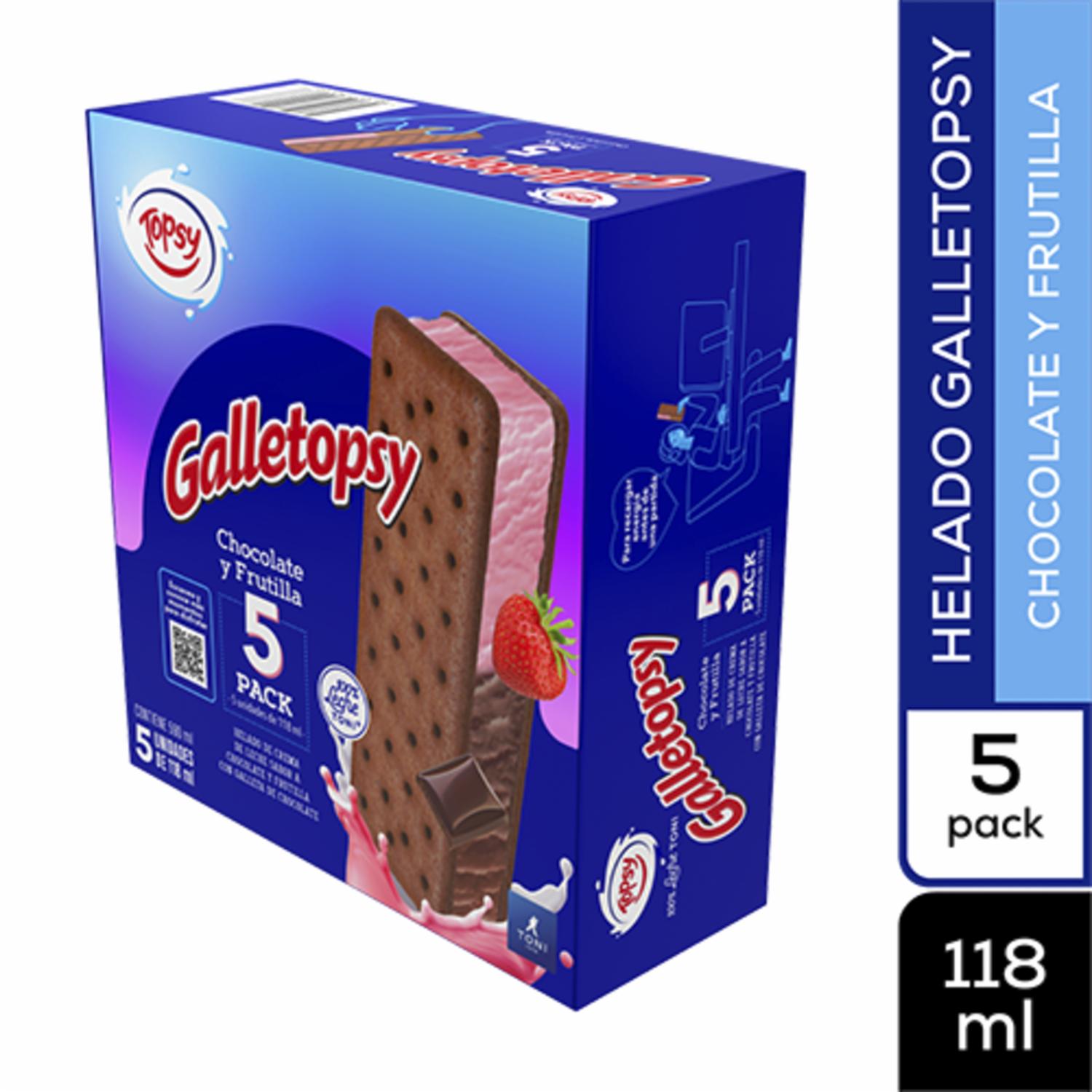 Helado Galleta Fresa Chocolate TOPSY 5 x 118ml – TOPSY. Disponible en nuestros locales. Precio y stock pueden variar según la tienda.