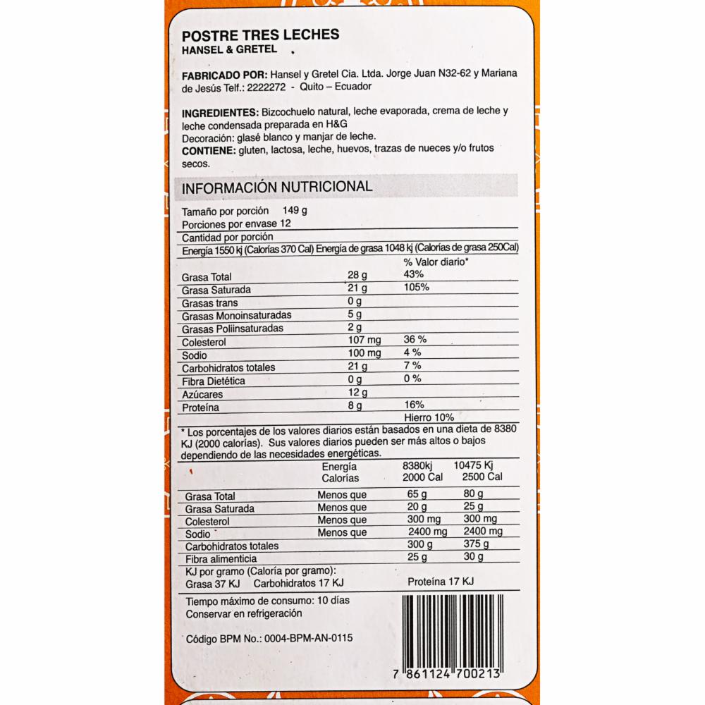 Torta De 3 Leches HANSEL & GRETEL 1788 G