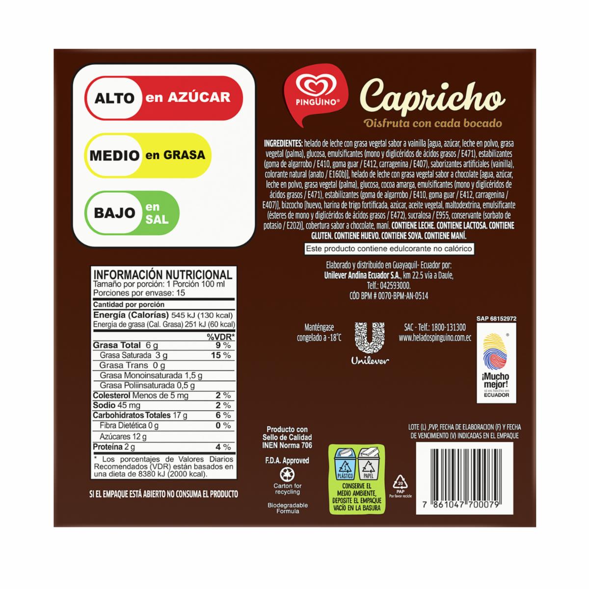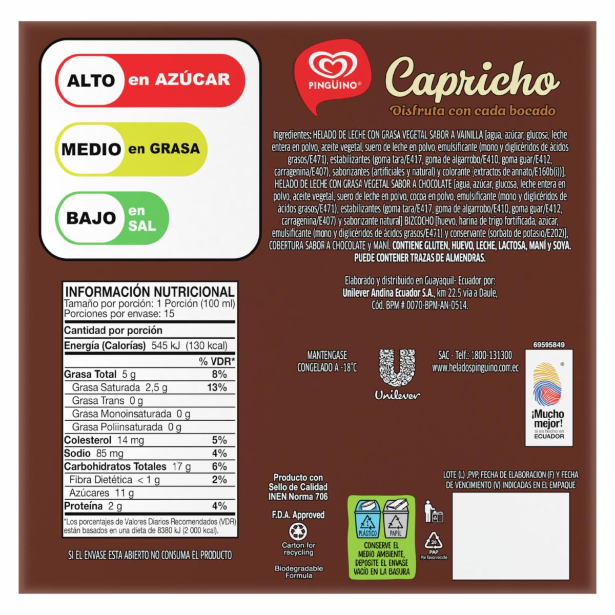 Torta Helada Capricho Vainilla Y Chocolate 15 Porciones PINGÜINO 1500 Ml