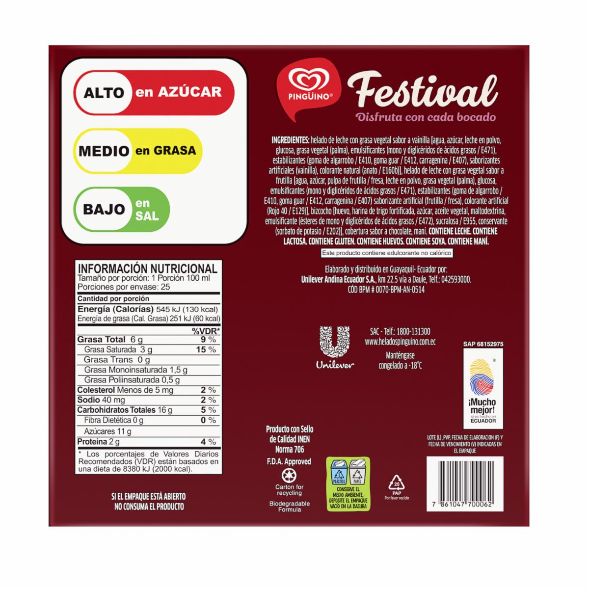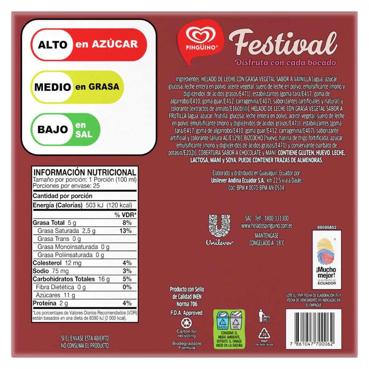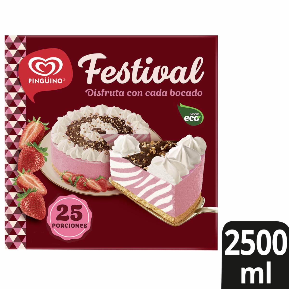 Torta Helada Festival Vainilla Y Frutilla 25 Porciones PINGÜINO 2500 Ml