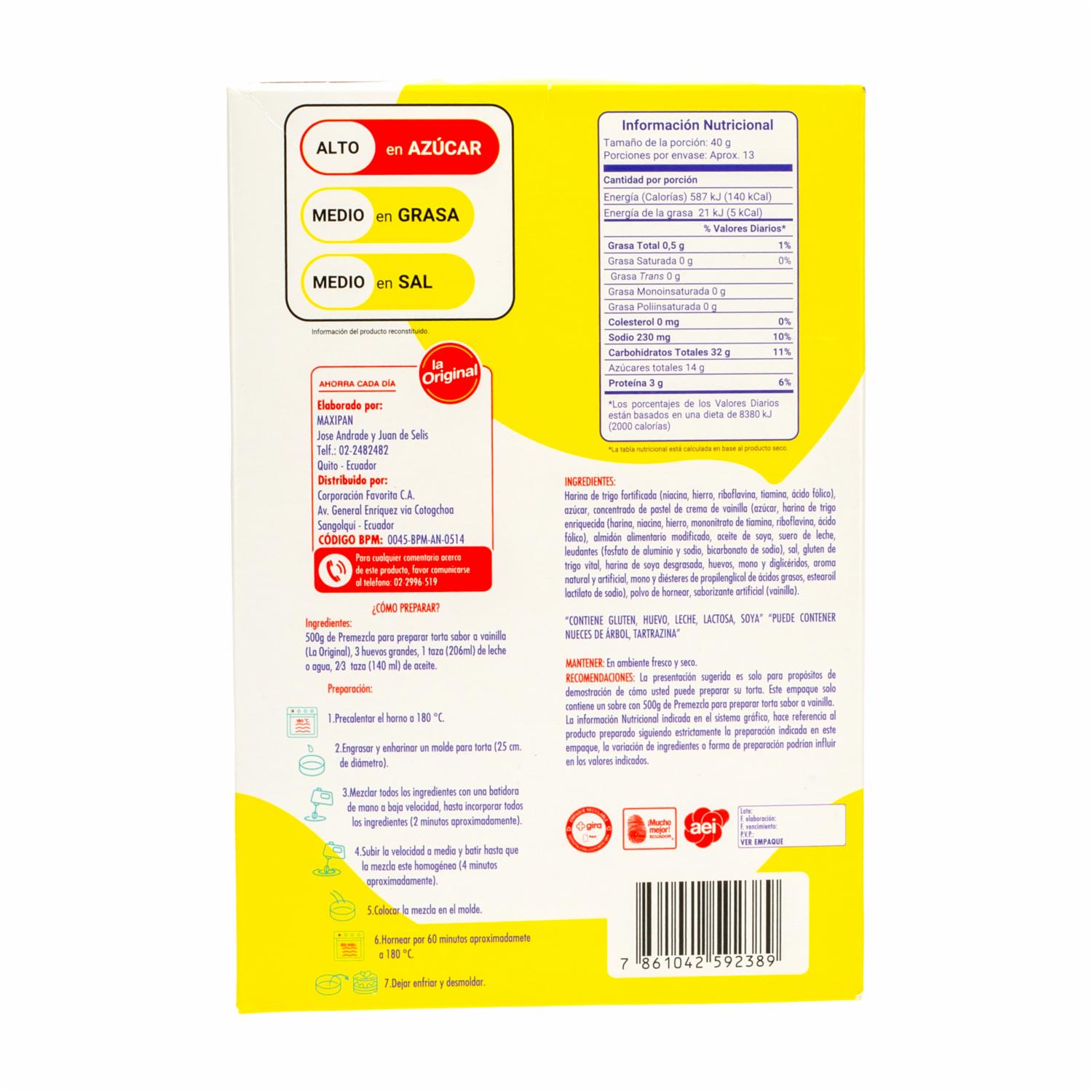 Torta Premezcla De Vainilla LA ORIGINAL 500 G