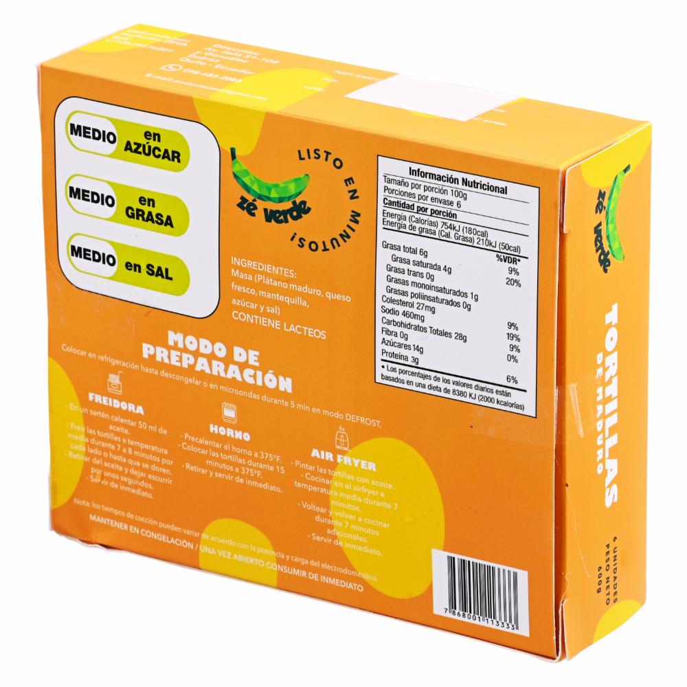 • La Tortilla de Maduro ZE VERDE en presentación de 600 g es una opción deliciosa y tradicional que combina el sabor dulce y suave del maduro con una masa suave y esponjosa