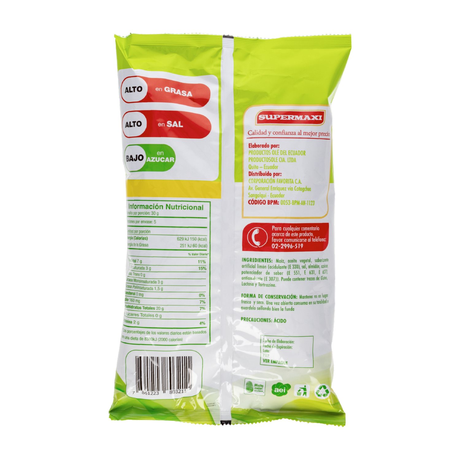 - Las tortillas de maíz sabor a limón SUPERMAXI vienen en una presentación de 150 g