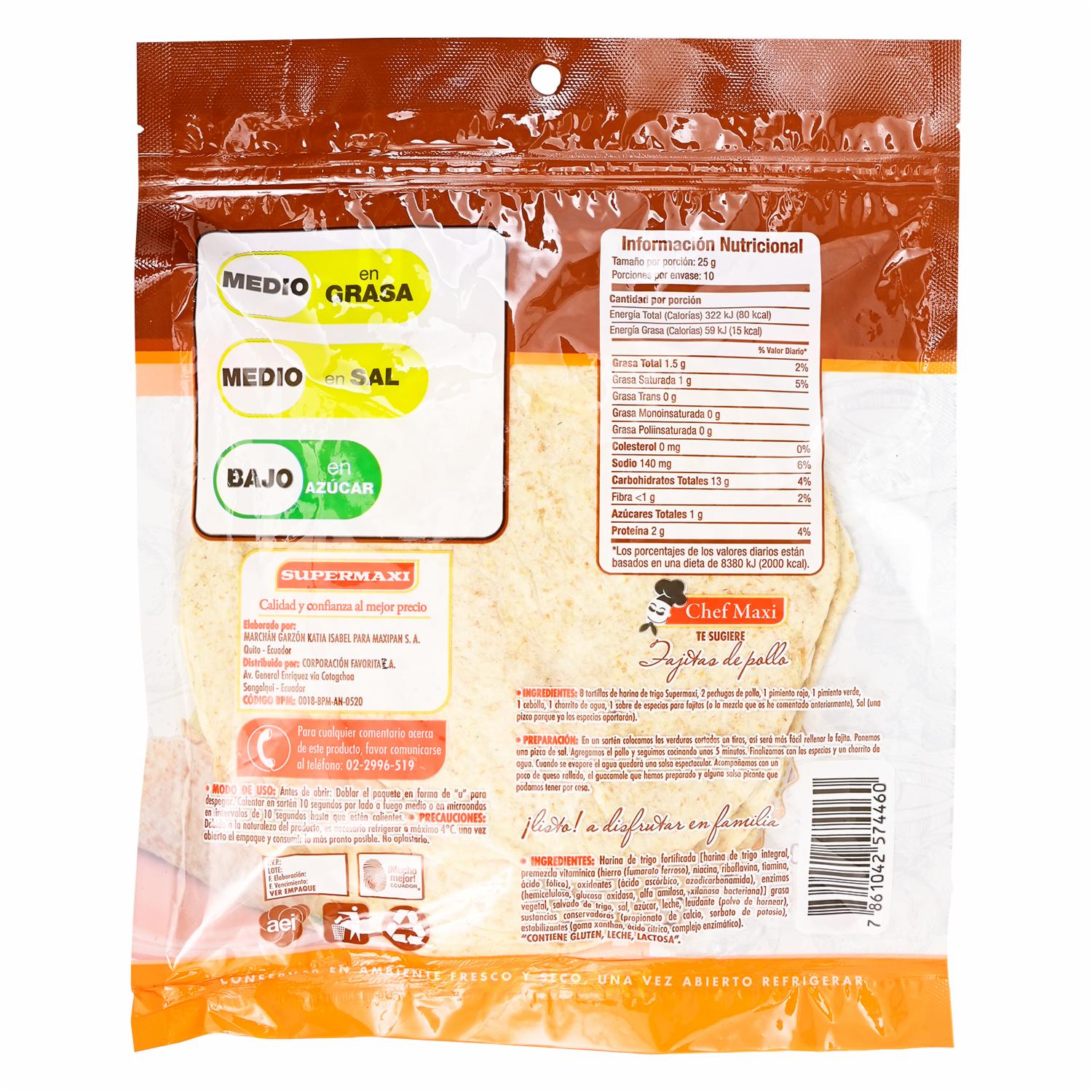 Tortilla Integral SUPERMAXI 250 G – SUPERMAXI. Disponible en nuestros locales. Precio y stock pueden variar según la tienda.