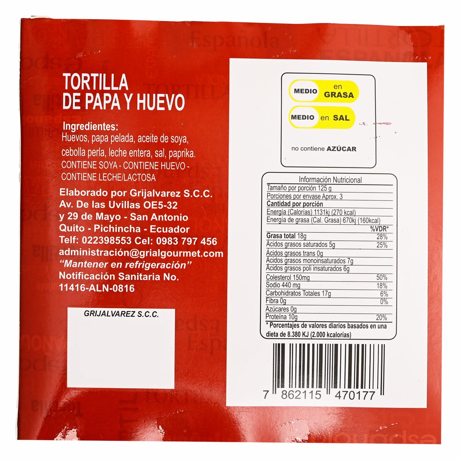 Tortilla Papa Y Huevo GRIAL 400 G – GRIAL. Disponible en nuestros locales. Precio y stock pueden variar según la tienda.