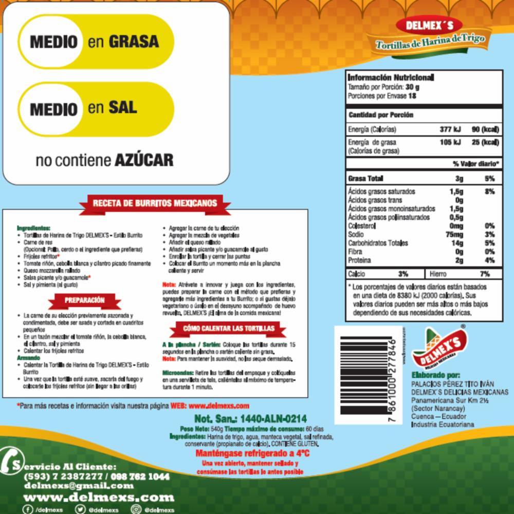 Tortillas De Harina De Trigo Estilo Burrito DELMEX´S 540 G