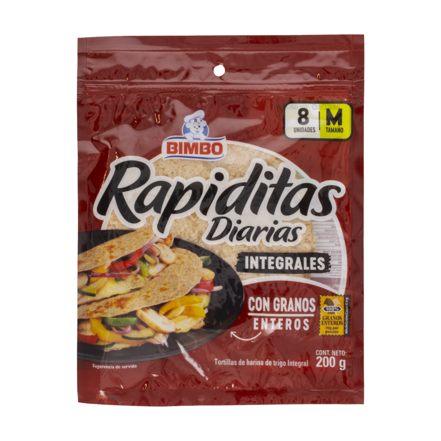 Tortillas De Harina Integral Rapiditas Diarias Con Granos Enteros BIMBO 200 G