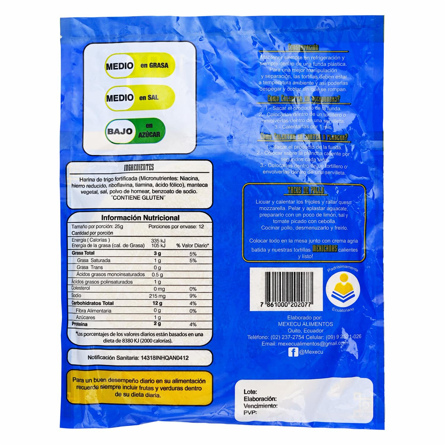 Tortillas De Harina MEXICANAS 300 G – MEXICANAS. Disponible en nuestros locales. Precio y stock pueden variar según la tienda.