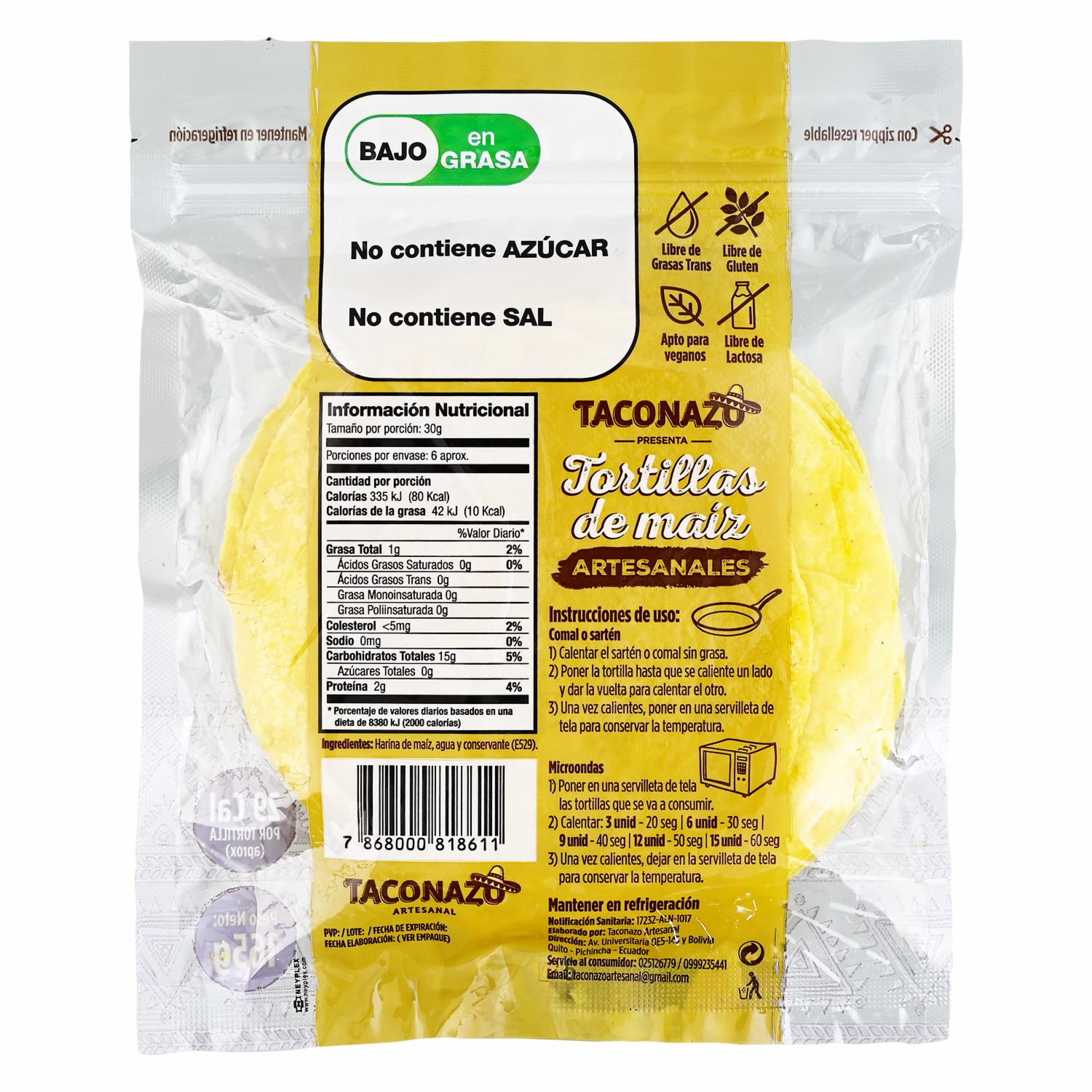 Tortillas De Maíz TACONAZO Funda – TACONAZO. Disponible en nuestros locales. Precio y stock pueden variar según la tienda.