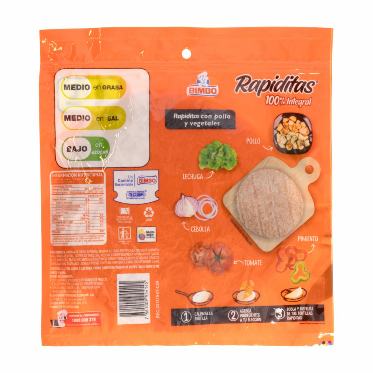 consultando preciosTortillas Integrales BIMBO 320 G – BIMBO. Disponible en nuestros locales. Precio y stock pueden variar según la tienda.