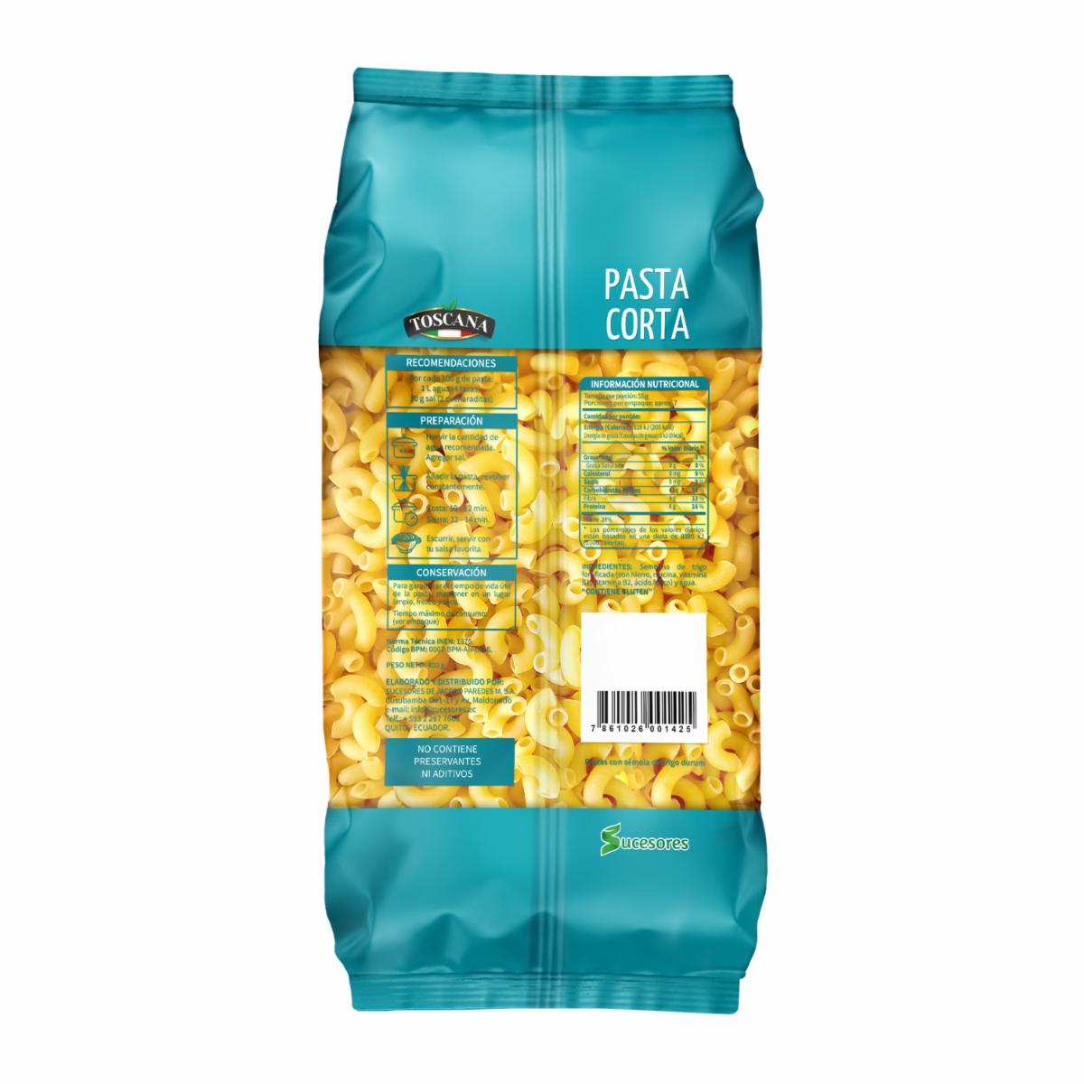 - Pasta con calidad y tradición Italiana, elaborada a base de semolina de trigo durum , fortificada con hierro y vitaminas, no contiene colorantes ni preservantes