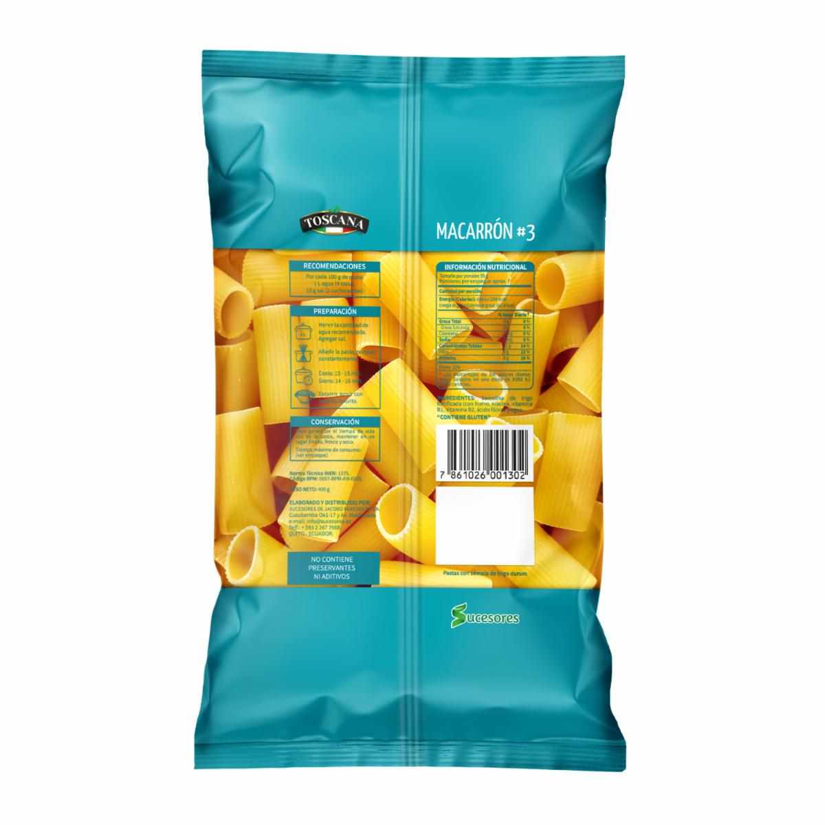 Fideo Macarrón N°3 TOSCANA 400 G – TOSCANA. Disponible en nuestros locales. Precio y stock pueden variar según la tienda.