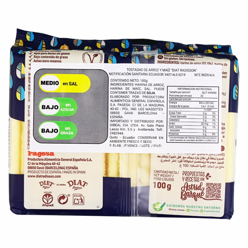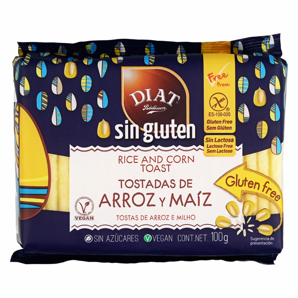 Tostadas De Arroz Y Maíz Sin Gluten DIAT RÁDISSON 100 G – DIAT RÁDISSON. Disponible en nuestros locales. Precio y stock pueden variar según la tienda.