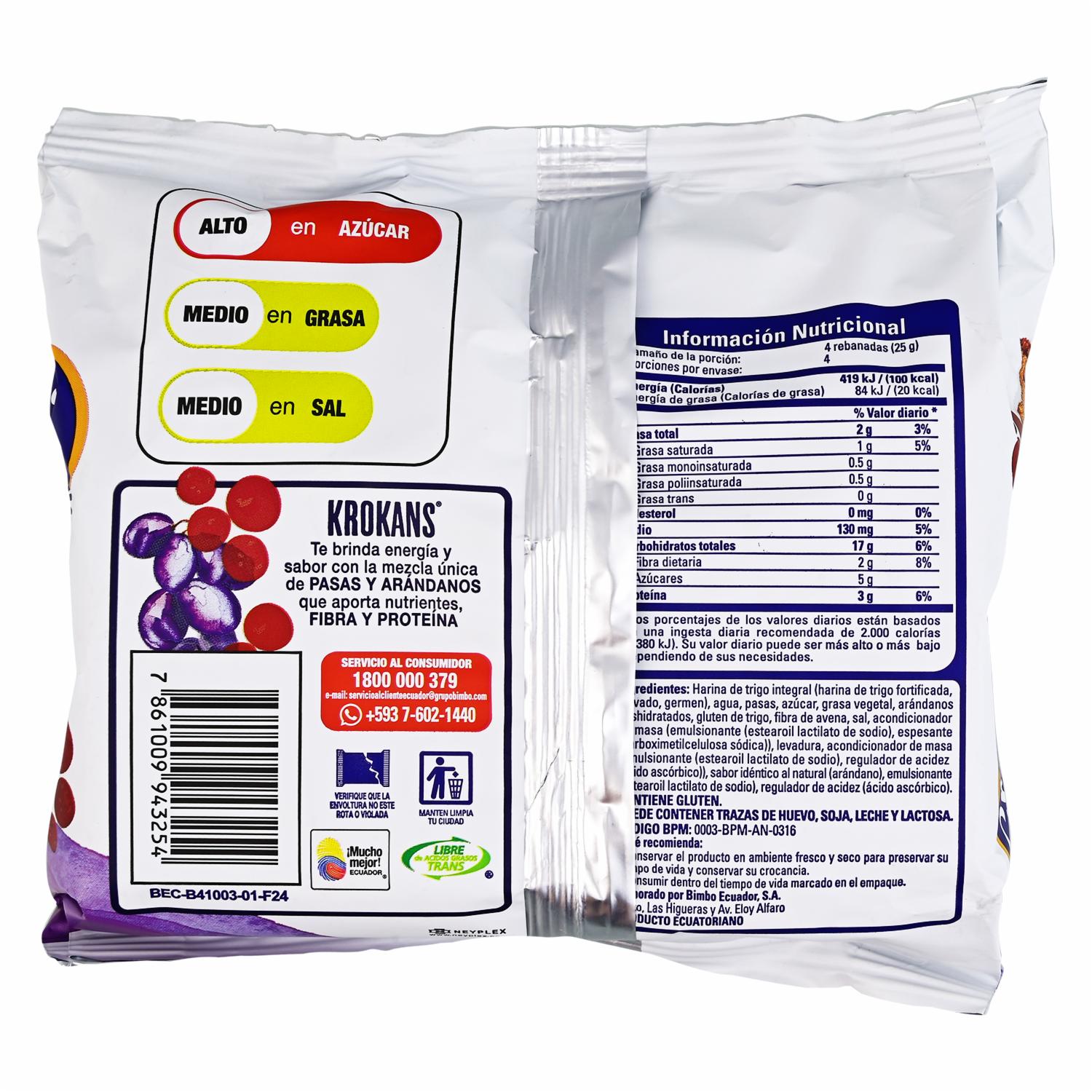 Pan tostado integral con arándanos y pasas, alto en fibra y proteínas