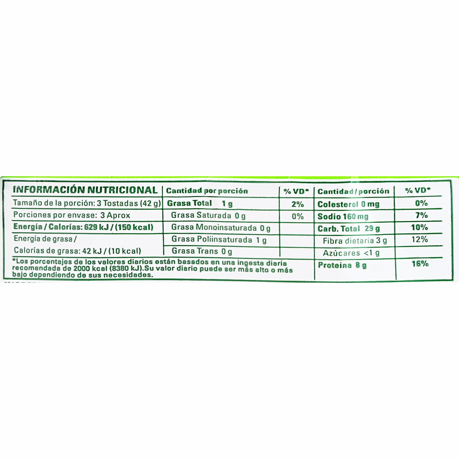 Tostadas integrales cero cero con sabor natural y textura crujiente. Ideales para un desayuno o snack saludable. Ricas en fibra para cuidar tu digestión. Perfectas para acompañar con tus toppings favoritos