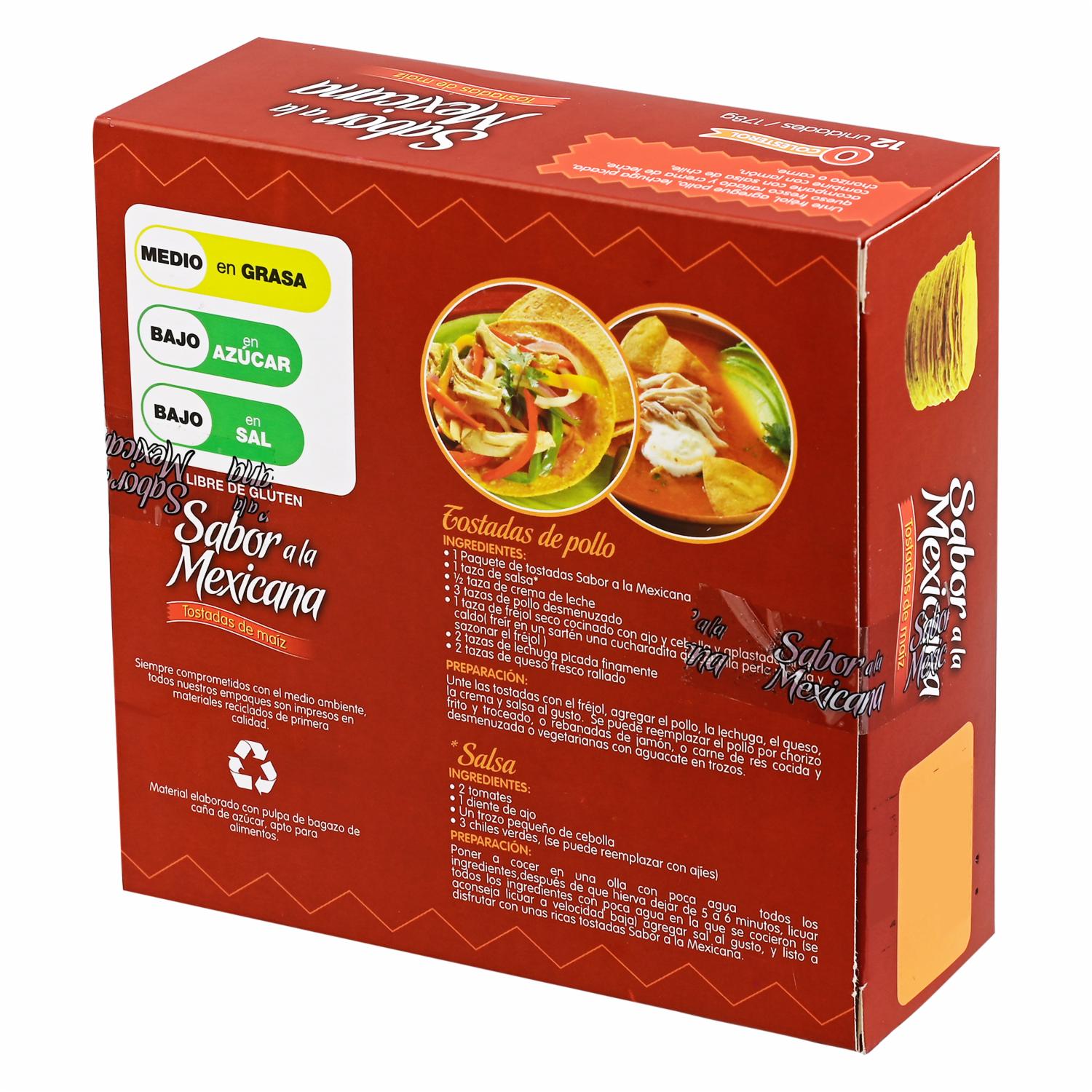 Tostadas Sabor SABOR A LA MEXICANA 178 G – SABOR A LA MEXICANA. Disponible en nuestros locales. Precio y stock pueden variar según la tienda.