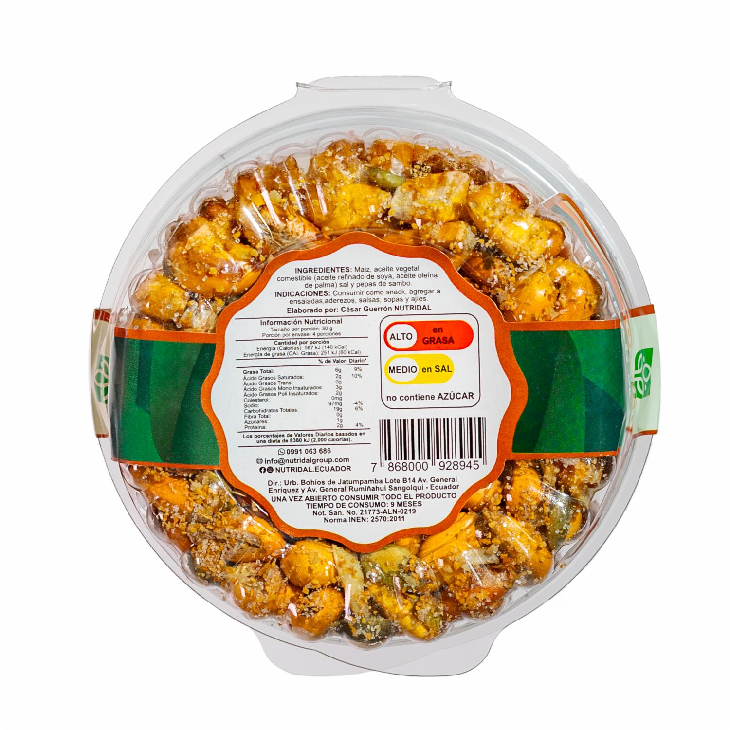 - El maíz tostado con Pepas de Sambo Nutridal, es una combinación perfecta para calmar tu hambre de una manera sana con un snack delicioso. Este snack completo es un gran aporte de energía, y te permite reemplazar comidas completas cuando necesitas algo rico, saludable y rápido