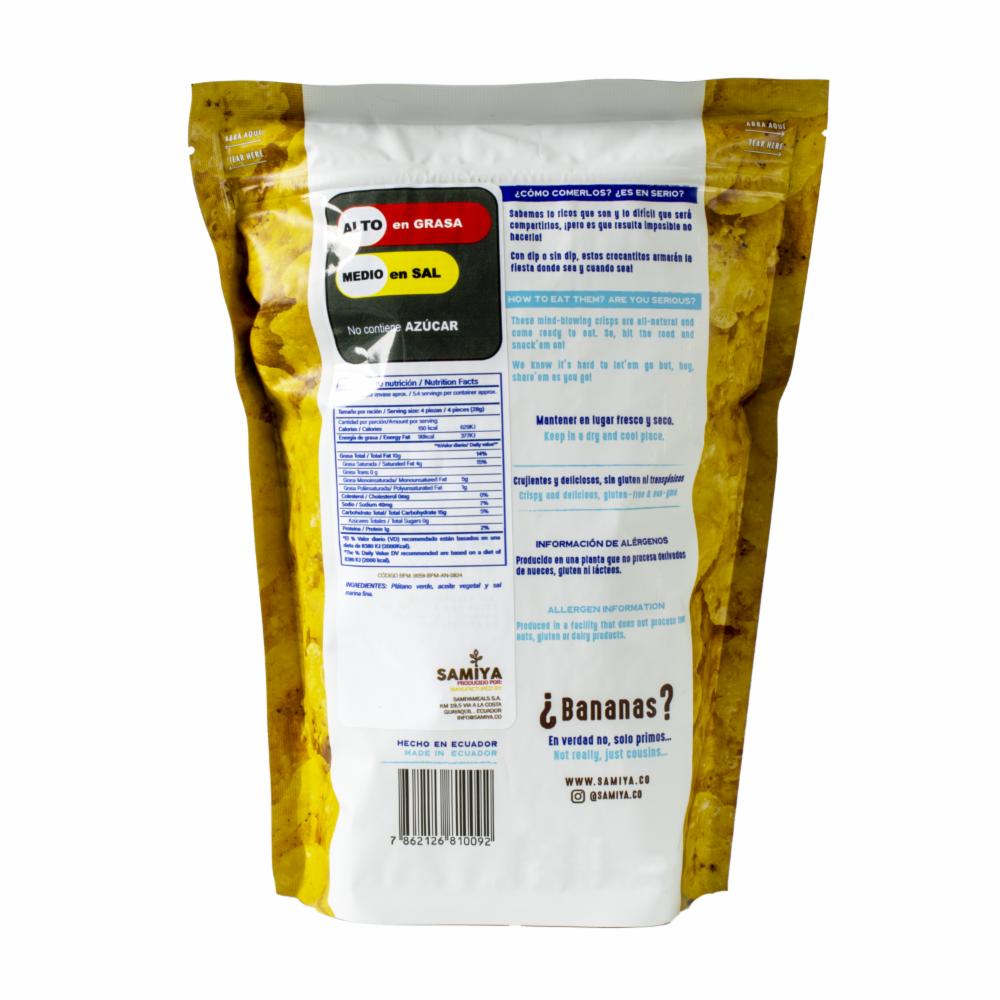 Delicioso y crujiente snack ideal para disfrutar en cualquier momento del día. Hechos con plátano verde, estos tostones están perfectamente fritos para ofrecer una textura crujiente y un sabor natural, realzado con una ligera capa de sal marina, que los hace irresistibles