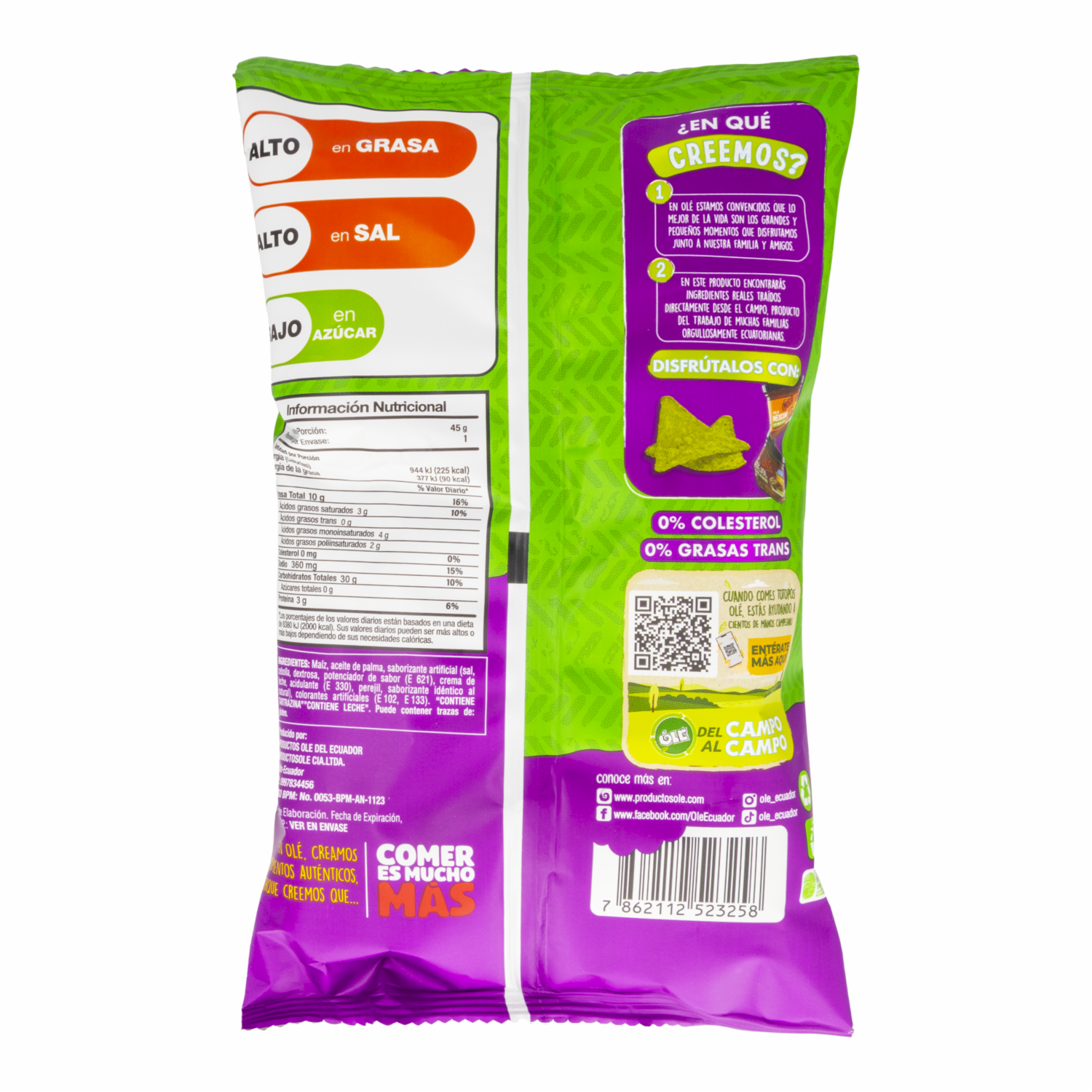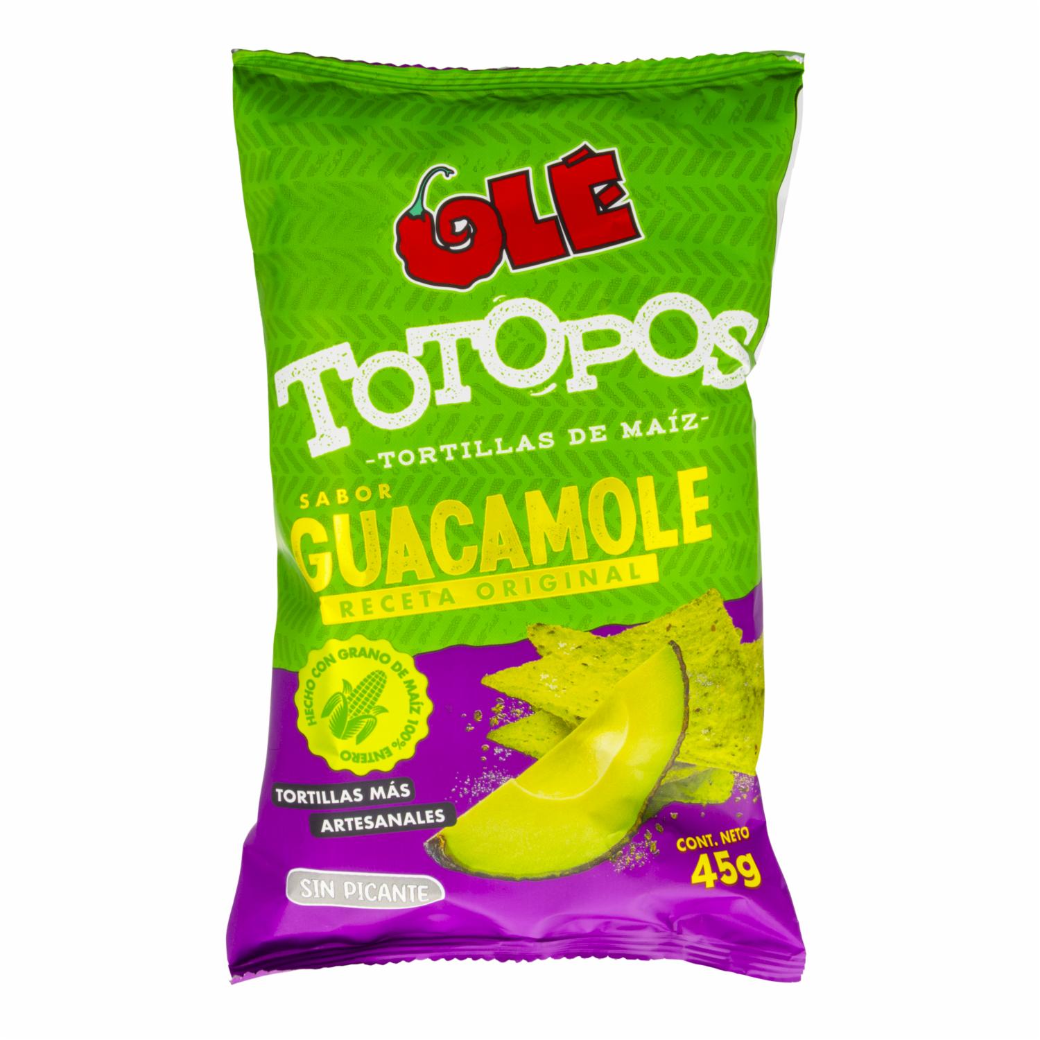 Totopos De Guacamole OLÉ 45 G – OLE. Disponible en nuestros locales. Precio y stock pueden variar según la tienda.
