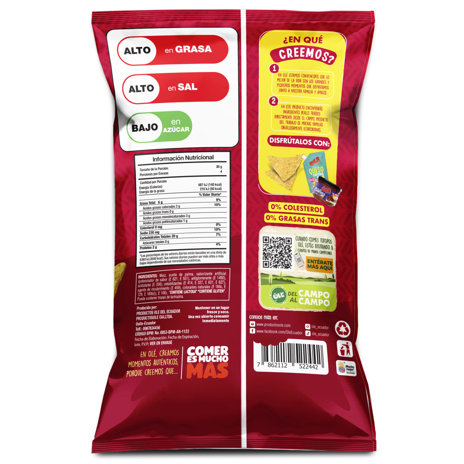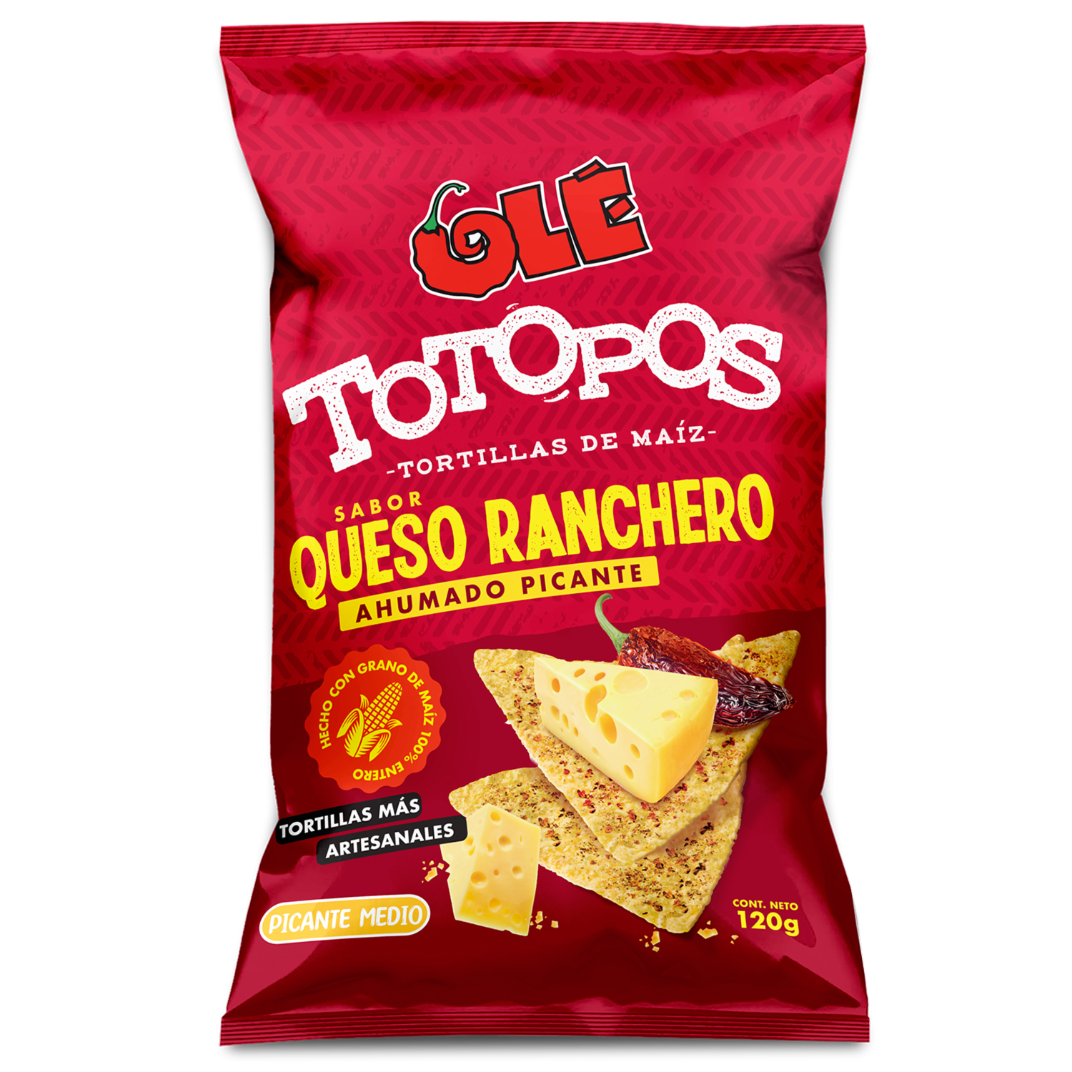 consultando preciosTotopos Sabor Queso Ranchero OLÉ 120G – OLE. Disponible en nuestros locales. Precio y stock pueden variar según la tienda.