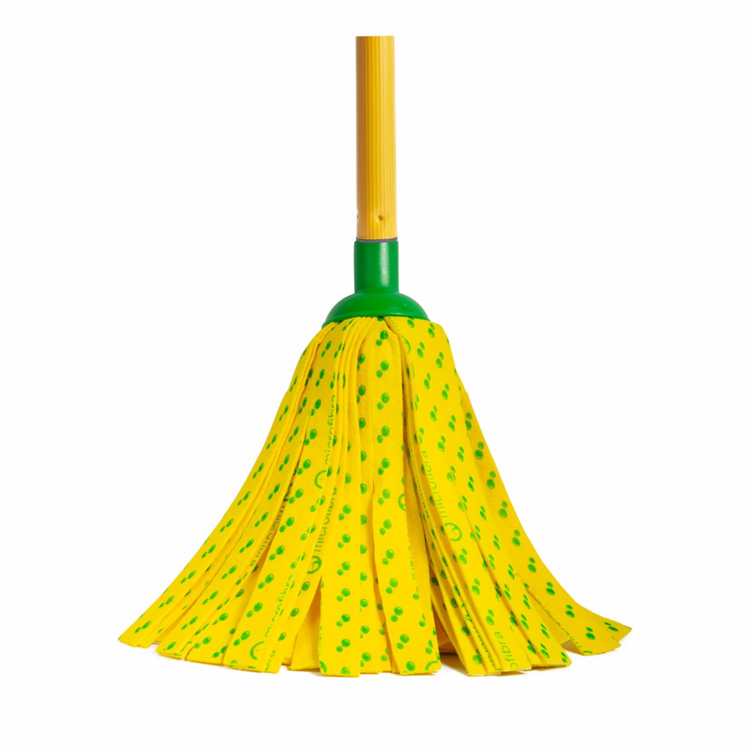 Trapeador amarillo de Tiras Plus de Microfibra que brindan una máxima absorción en todo tipo de pisos y superficies.
