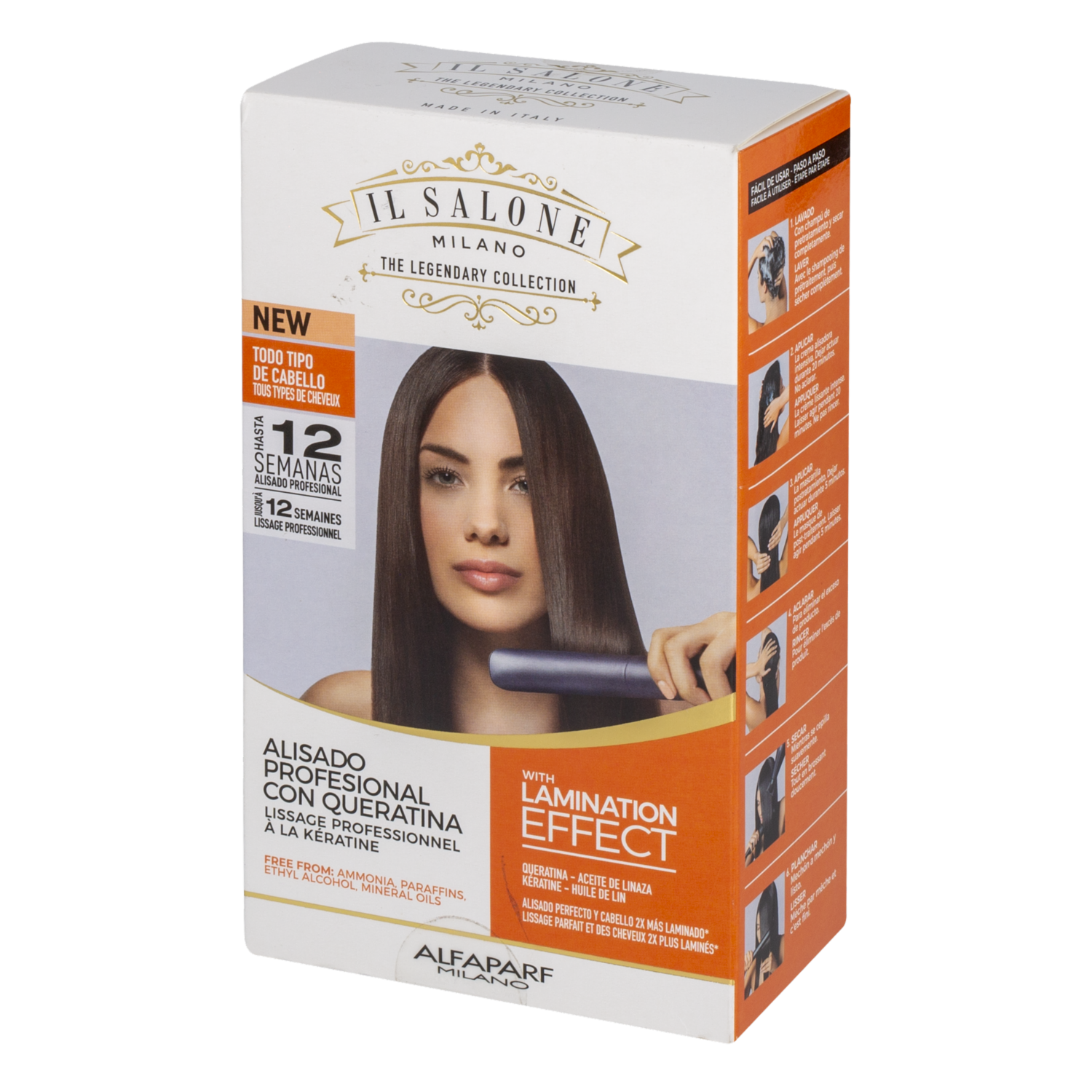 - Un kit de alisado ideal para todo tipo de cabello que deja un acabado brillante con efecto laminación. Ofrece hasta 12 semanas de liso profesional mientras controla el encrespado para un look pulido cada día. Además, brinda protección térmica hasta 260 °C, perfecto para quienes usan herramientas de calor con frecuencia