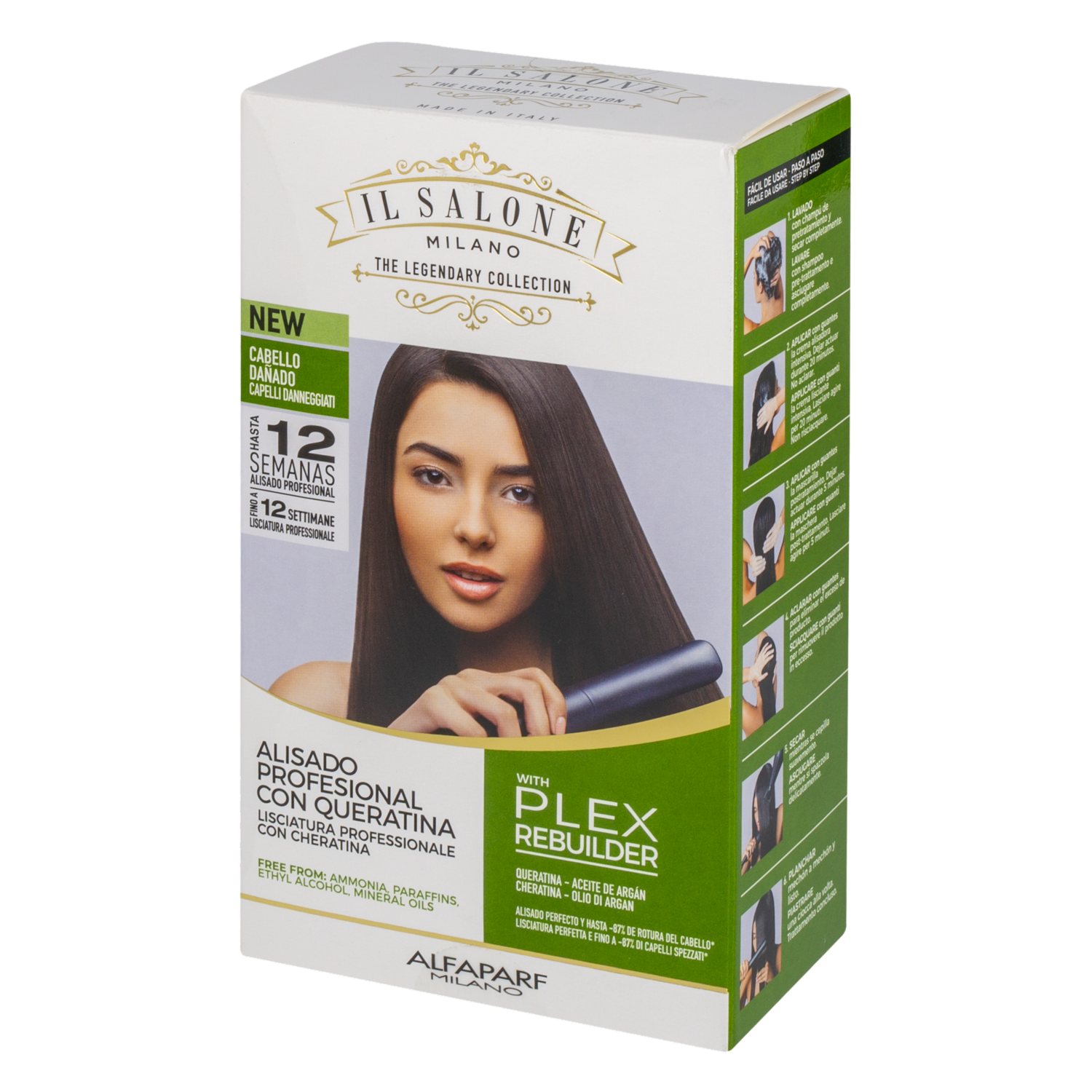 - Un kit de alisado diseñado para transformar el cabello dañado, dejándolo más liso, fuerte y manejable. Su tecnología Plex Rebuilder ayuda a reducir la rotura hasta en un 87% y proporciona un alisado duradero de hasta 12 semanas. Además, ofrece protección térmica hasta 260 °C, ideal para quienes usan herramientas de calor y buscan un acabado profesional en casa