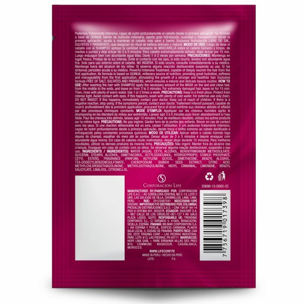 Poderoso Tratamiento Intensivo, capaz de nutrir profundamente el cabello desde la primera aplicación. Su fórmula a base de QUINUA, fuente de nutrición milenaria, aporta gran hidratación, suavidad y manejabilidad desde la primera aplicación, estimulando el crecimiento de cabello más sano y fuerte