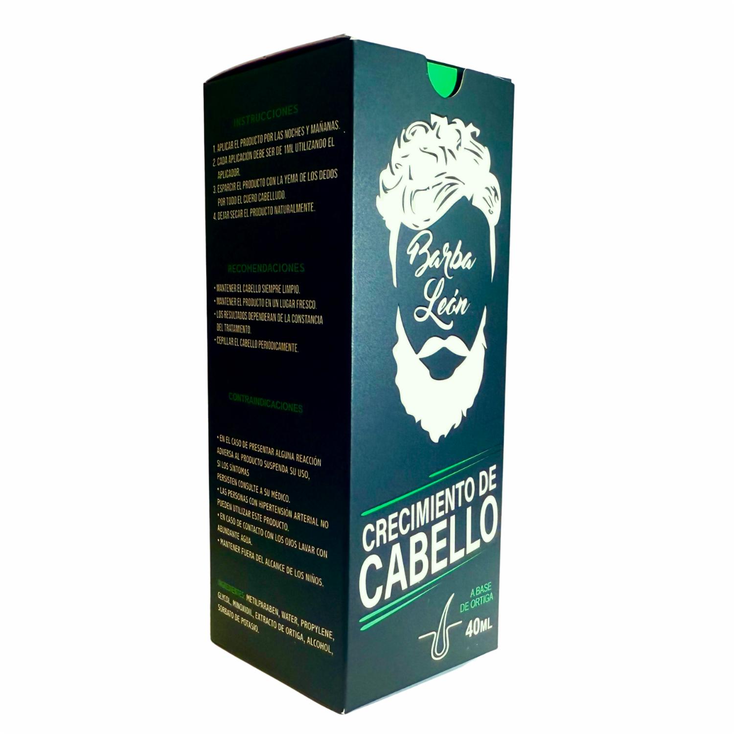- Barba León -- Tonico crecimiento de cabello, es un producto hecho con extracto puro de ortiga combinado con vitaminas A, B, y E combinado eficientemente con minoxidil convirtiendolo en un producto muy efectivo para detener la caída y estimular el crecimiento del cabello, no produce efectos secundarios, es suave con la piel del cuero cabelludo y muy como de utilizar gracias a su presentacion con atomizador