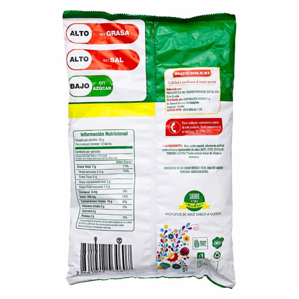 Botanas de maíz sabor a queso, crocantes y llenas de sabor, ideales para piqueos o llevar a cualquier sitio. Con la calidad y confianza de siempre, solo en Superemaxi, el placer de comprar