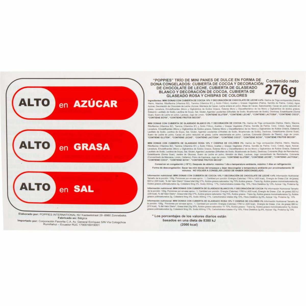 consultando preciosTrio Mini Donust Congeladas POPPIES 276 G – POPPIES. Disponible en nuestros locales. Precio y stock pueden variar según la tienda.