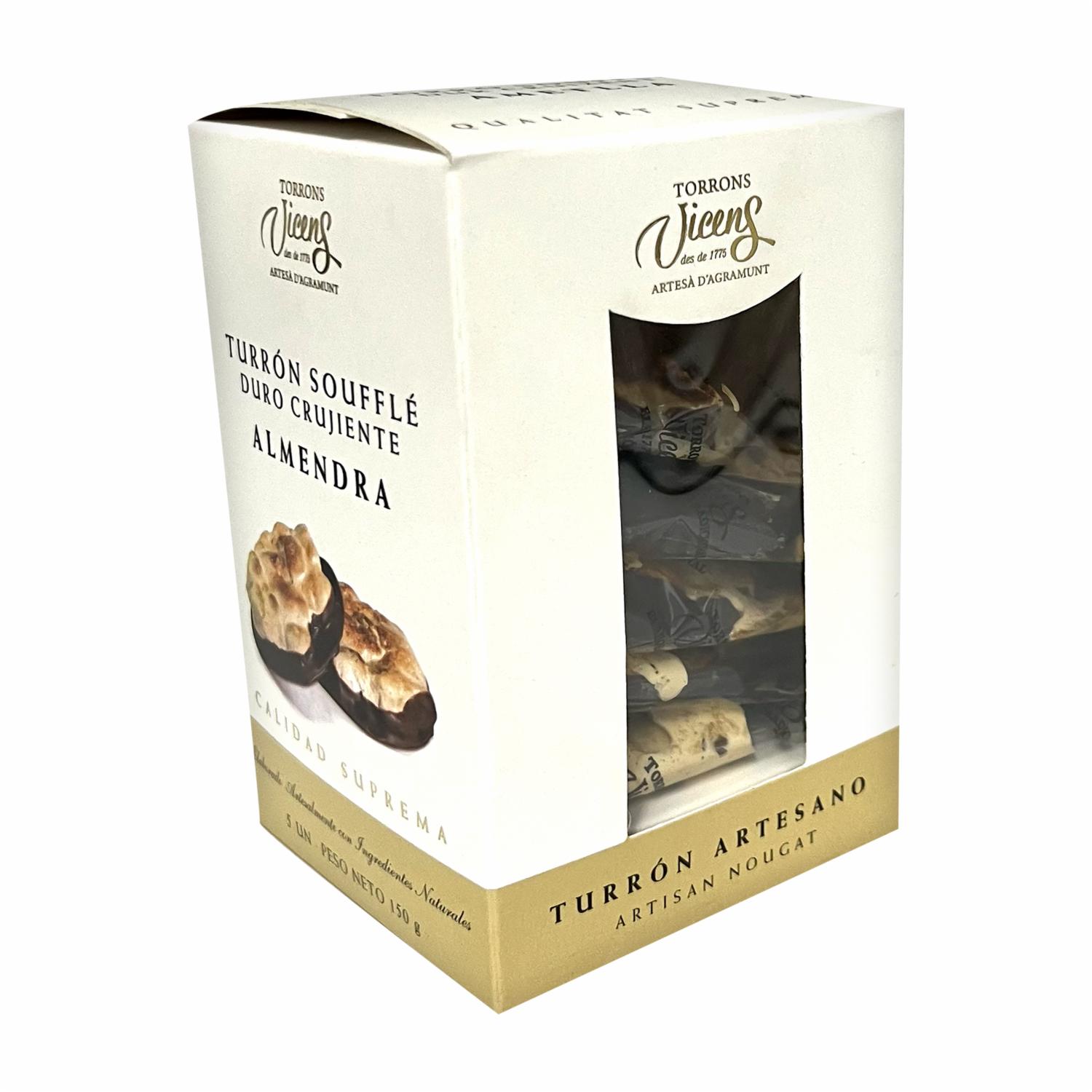 consultando preciosTurrón Almendra Souffle Sin Gluten VICENS Pack 5 X 30 G – VICENS. Disponible en nuestros locales. Precio y stock pueden variar según la tienda.