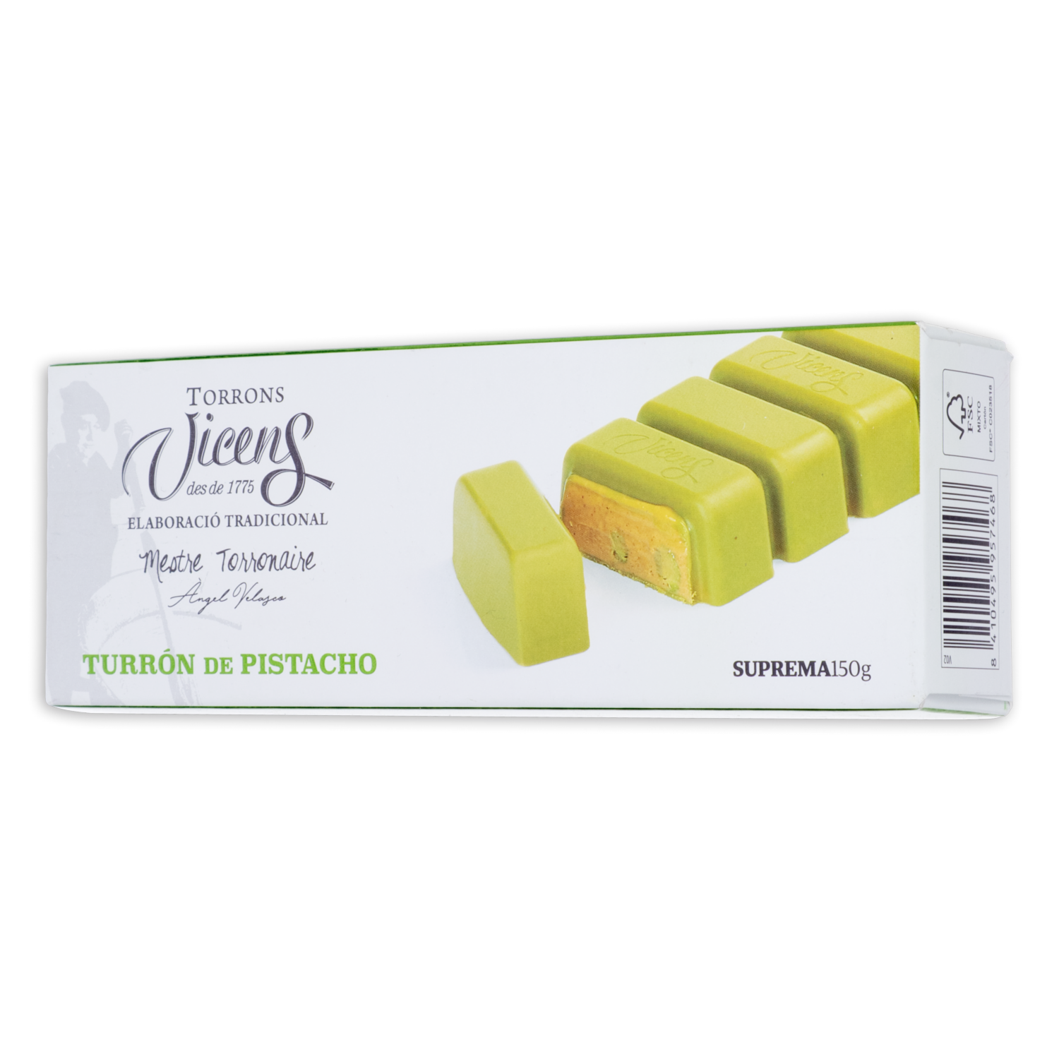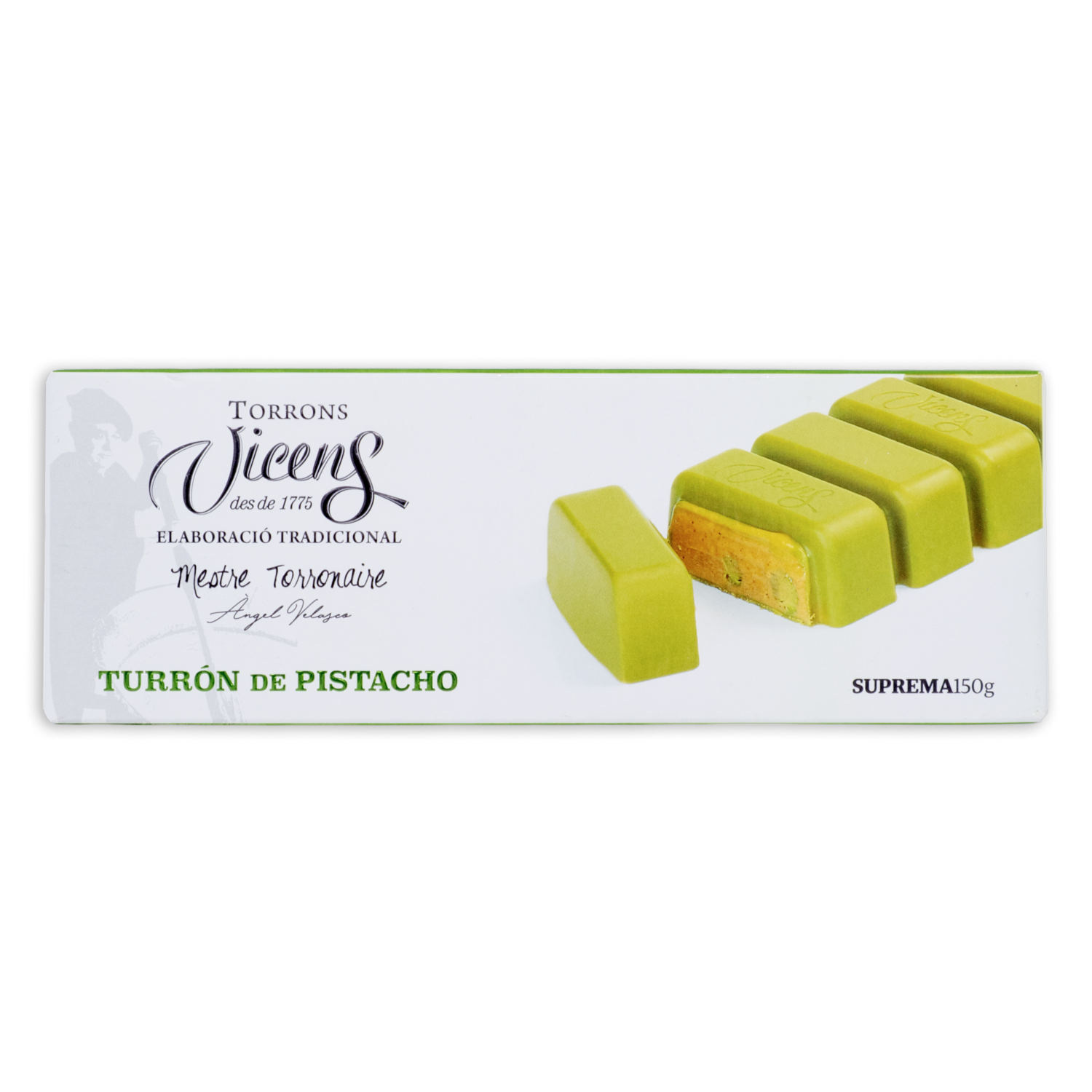 - El Turrón de Pistacho Vicens es una reinterpretación innovadora y sofisticada del praliné tradicional, elaborado íntegramente a base de pistacho seleccionado. Este dulce ofrece un sabor intenso y refinado, ideal para los amantes de este fruto seco