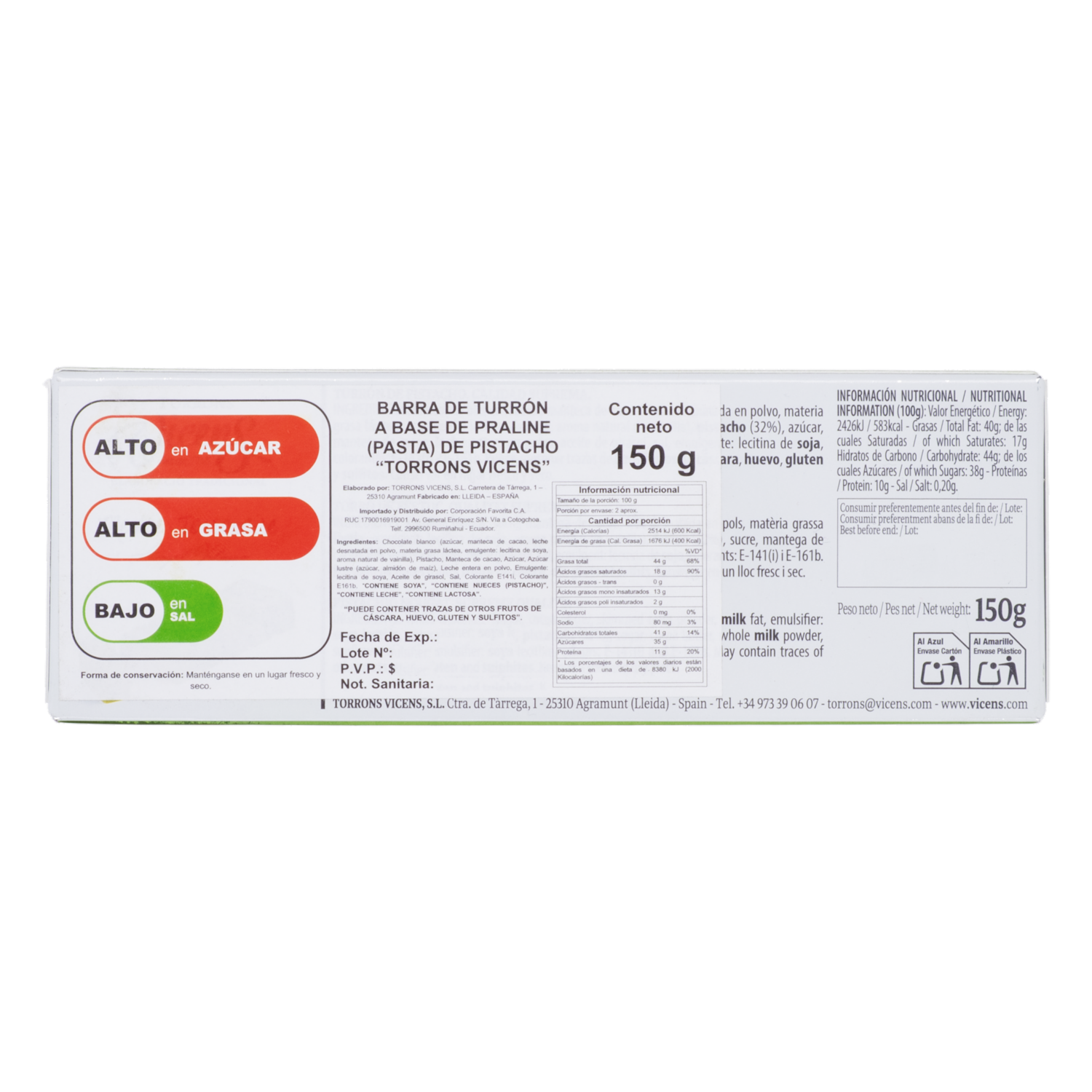 consultando preciosTurrón De Pistacho VICENS 150 G – VICENS. Disponible en nuestros locales. Precio y stock pueden variar según la tienda.