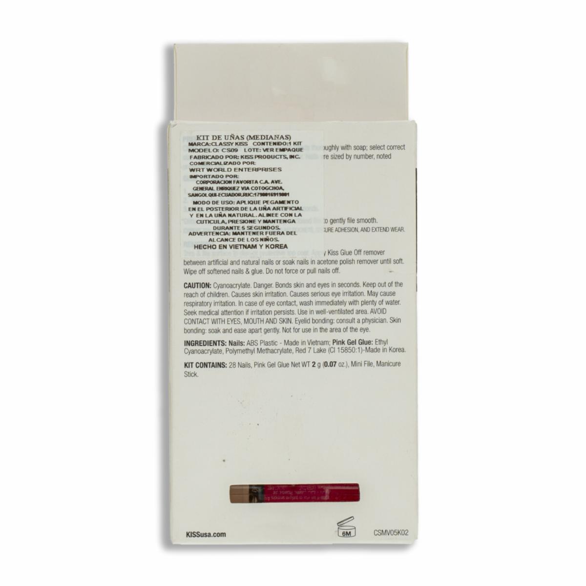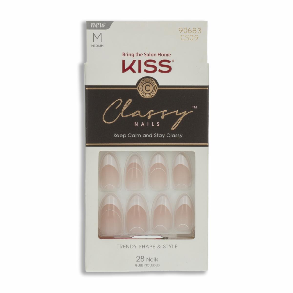 - Las Uñas Postizas Medianas Classy Diseño Francés KISS de 28 unidades ofrecen la elegancia atemporal de la manicura francesa con un acabado natural y sofisticado