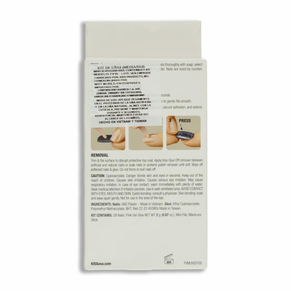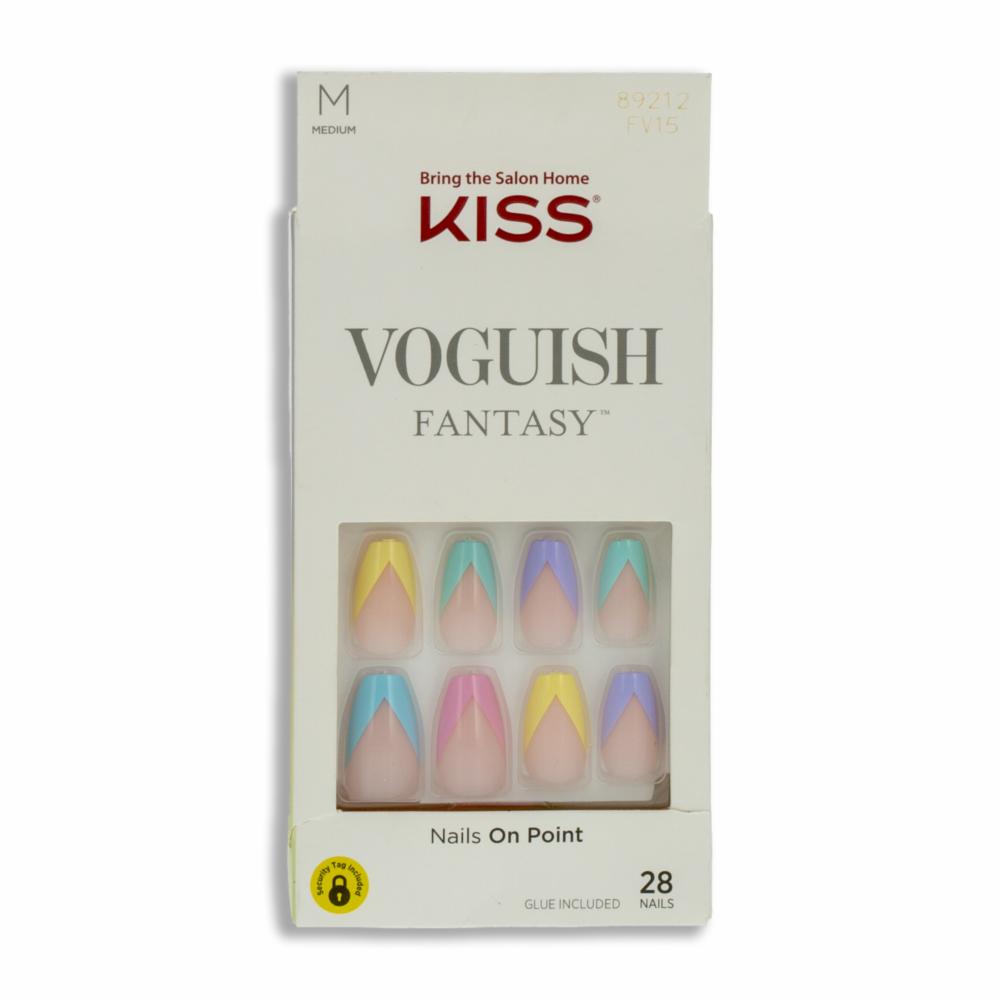Uñas Postizas Medianas Voguish Fantasy Francés De Colores KISS X 28 Uds