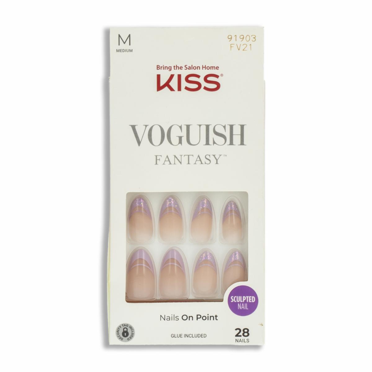 • Las Uñas Postizas Medianas Voguish Fantasy Francés Morado KISS de 28 unidades reinventan la manicura francesa con un elegante y vibrante tono morado en las puntas