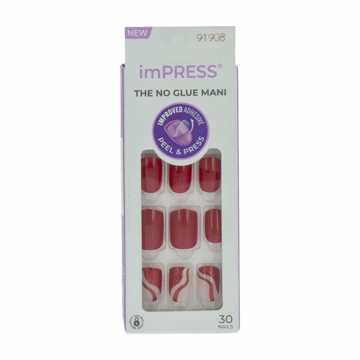 Uñas Postizas Rojas Con Diseño De Líneas IMPRESS X 30 Uds